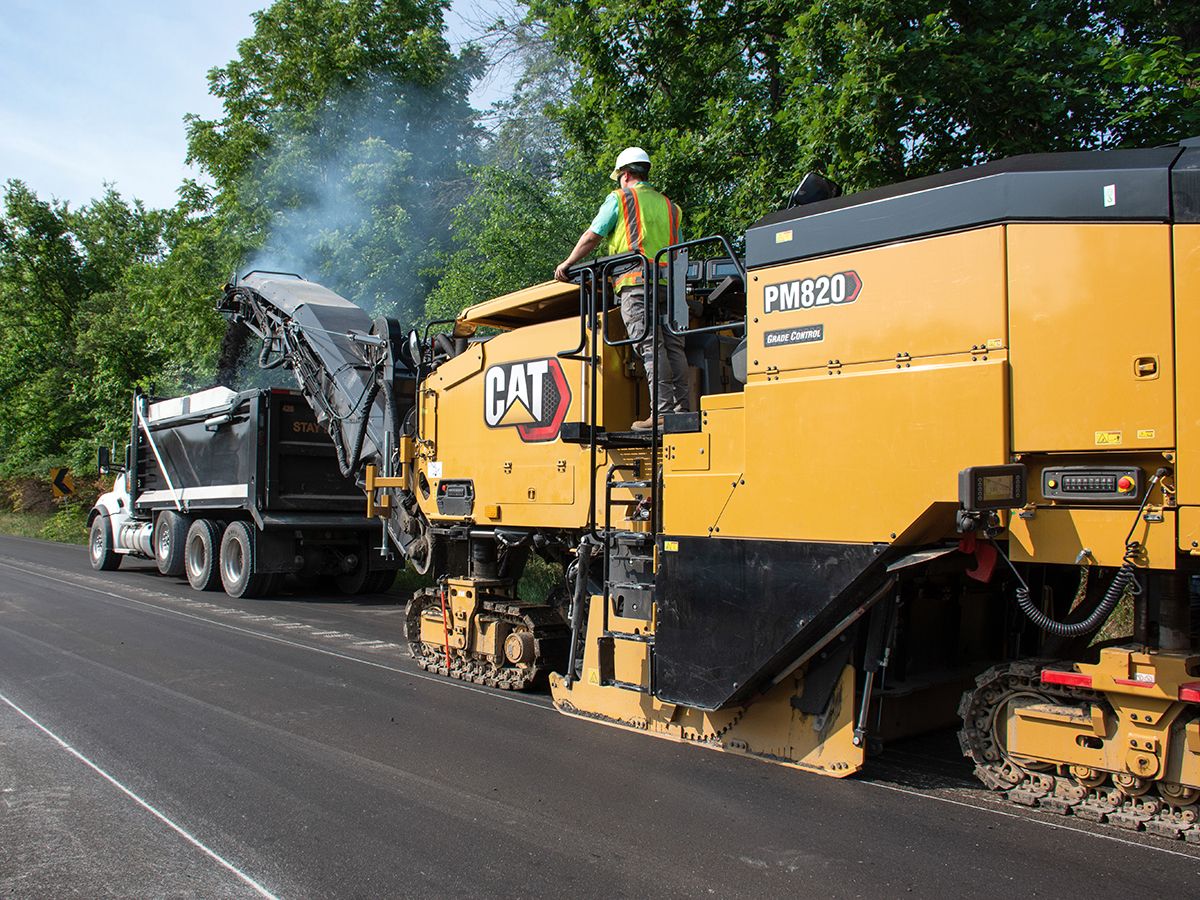 The high-production Cat® PM820 Cold Planer with integrated Cat Grade and Slope technology, automated systems and the latest System K rotors helps you meet the demands of the job with efficiency. A comfortable work environment and intuitive controls are designed to keep operators productive throughout the day. Easy access to daily service points helps simplify maintenance. Multiple options are available to enhance versatility for high production applications.