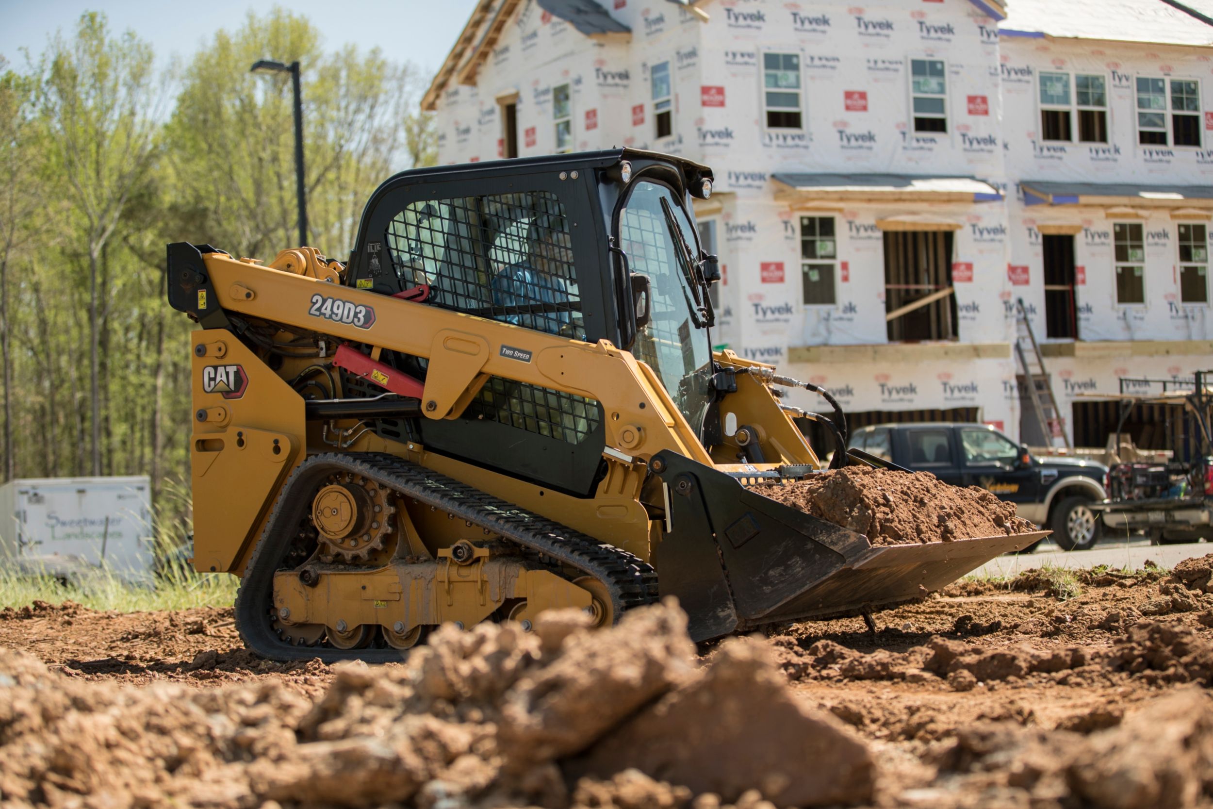 The Cat® 249D3 Compact Track Loader, with its vertical lift design, delivers extended reach and lift height for quick and easy truck loading. Its standard, suspended undercarriage system provides superior traction, flotation, stability and speed to work in a wide range of applications and underfoot conditions.