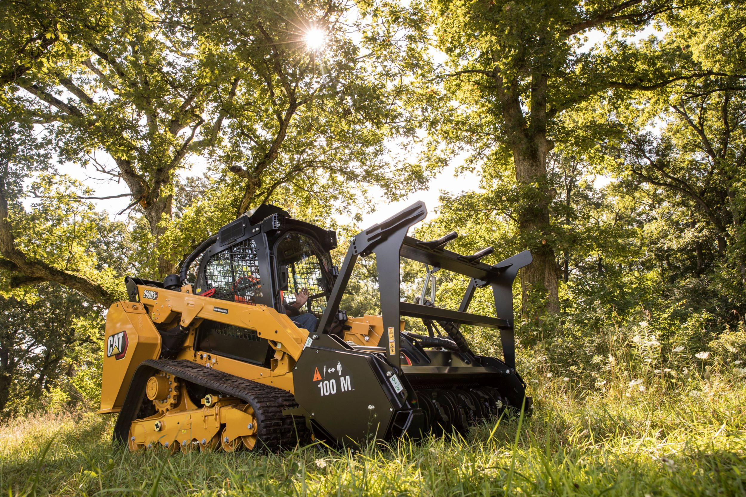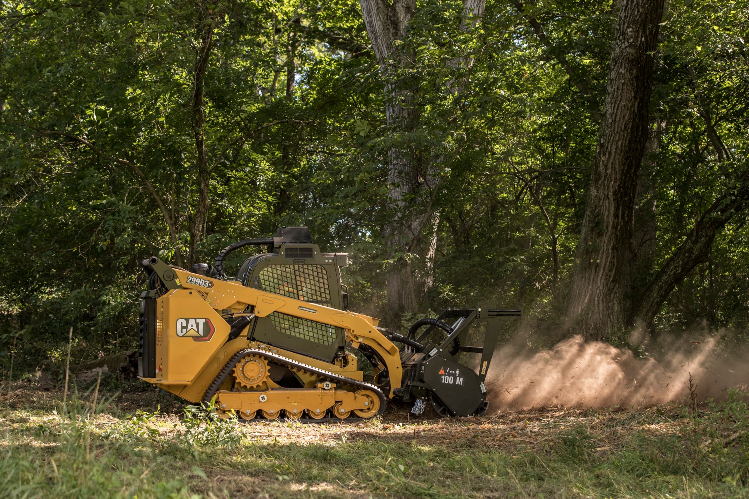 The Cat® 299D3 XE Land Management Compact Track Loader is a segment focused machine solution for customers involved in demanding vegetation-management applications, ranging from mulching, brush-cutting, vegetation control, and mowing. The 299D3 XE Land Management machine’s powerful Cat C3.8 engine combined with its high-flow/high-pressure auxiliary hydraulic system to deliver a calculated hydraulic power rating of 70 kW (94 hp), resulting in optimum performance when powering high-production, hydro-mechanical attachments.