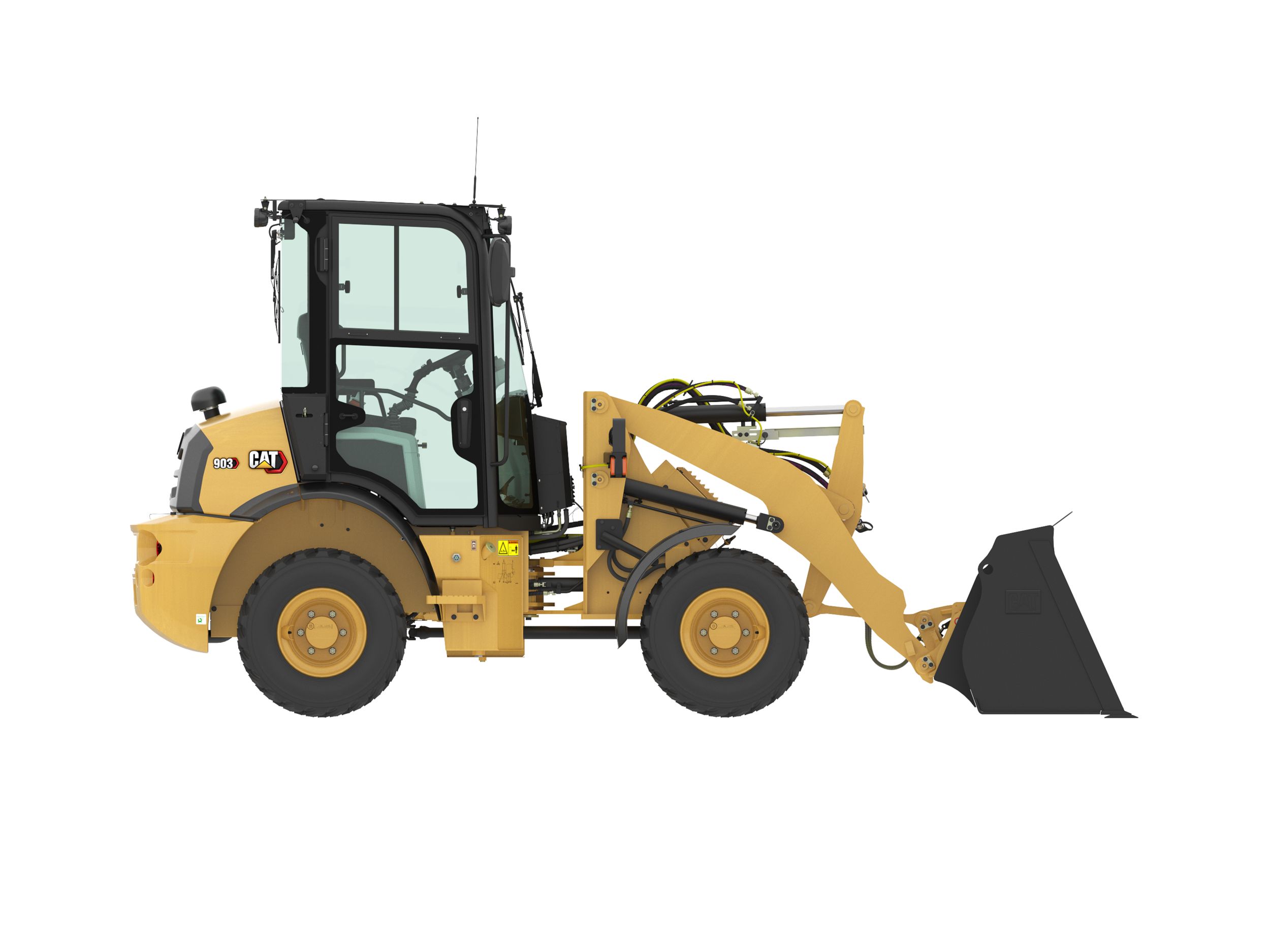 The Cat® 903 is compact, yet powerful, delivering high performance with outstanding versatility. The all new C1.7 engine provides better all-around performance. Features such as engine and ground speed control, provides customizable control when running hydromechanical work tools. With an ergonomic cab, multi-function joystick, and optional ride control, the 903 allows the operator to enjoy all day comfort.