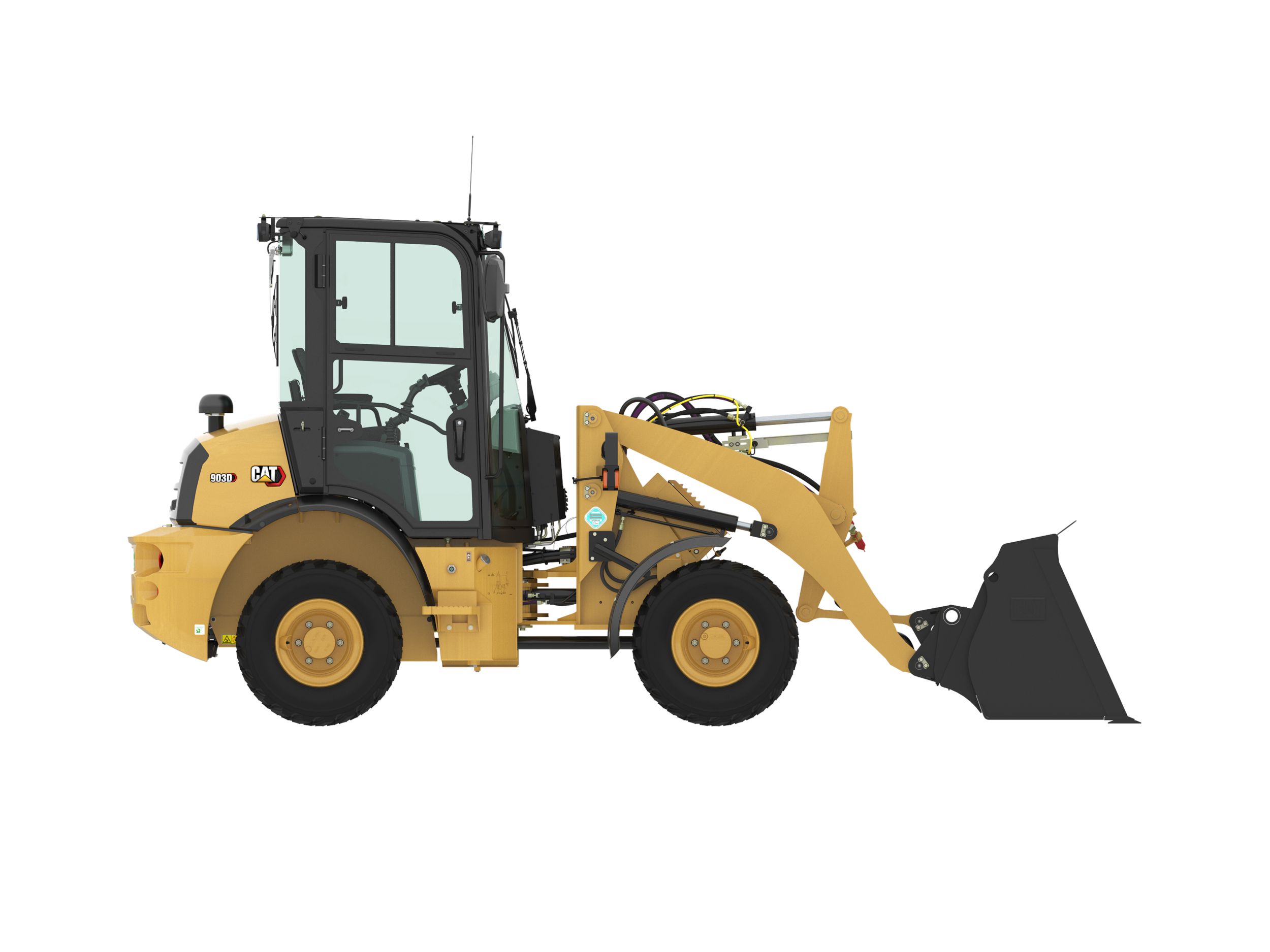 The Cat® 903D is compact, yet powerful, delivering high performance with outstanding versatility. A 25% increase in lift capacity and travel speed will allow the operator to be more productive, while new optional features such as engine and ground speed control, provides customizable control when running hydro-mechanical work tools. With a more ergonomic cab, new multi-function joystick, and optional ride control, the 903D allows the operator to enjoy all day comfort.