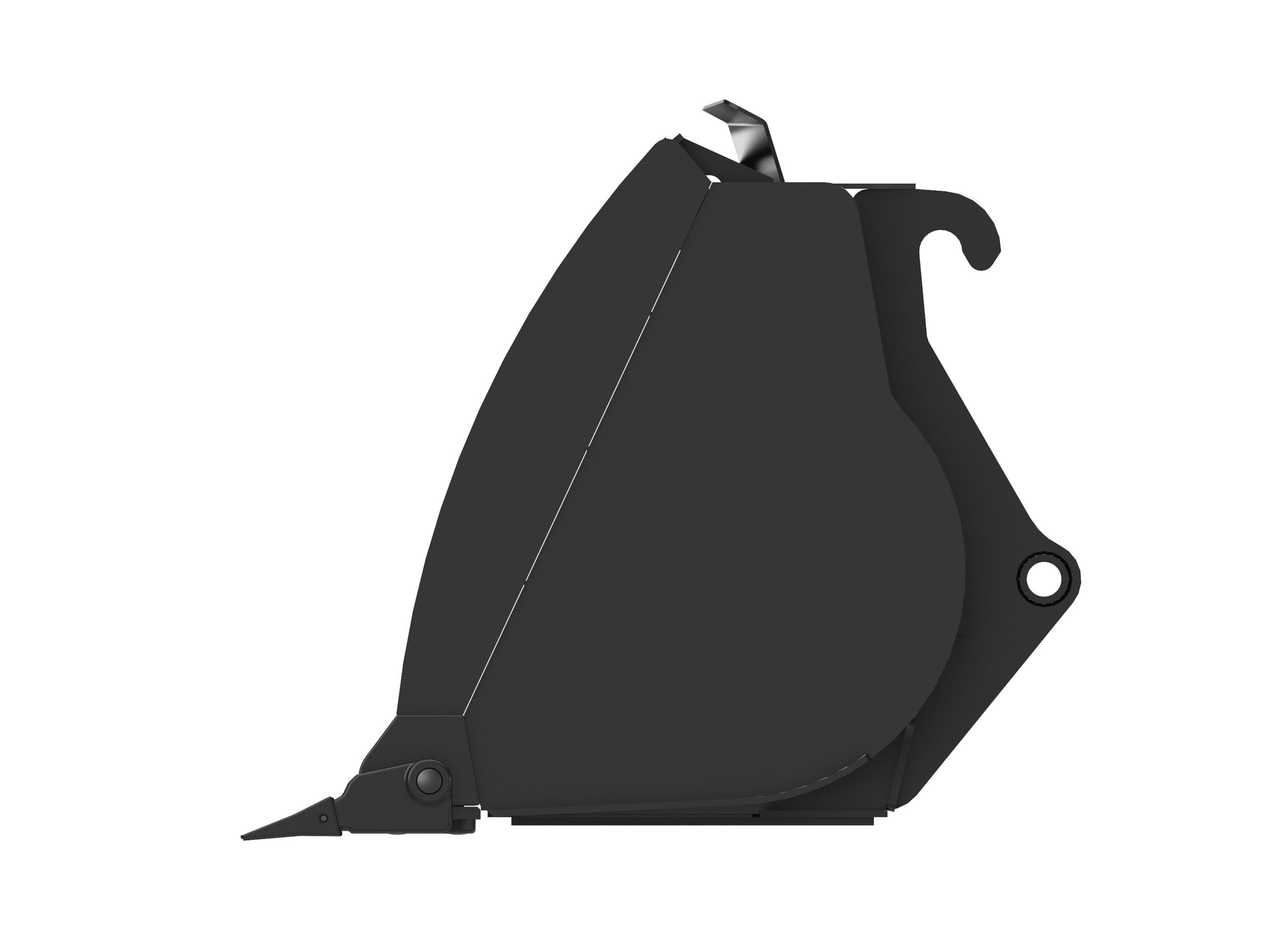 Penetrating rounded sidebars help funnel material into the bucket, holding more material with less spillage.