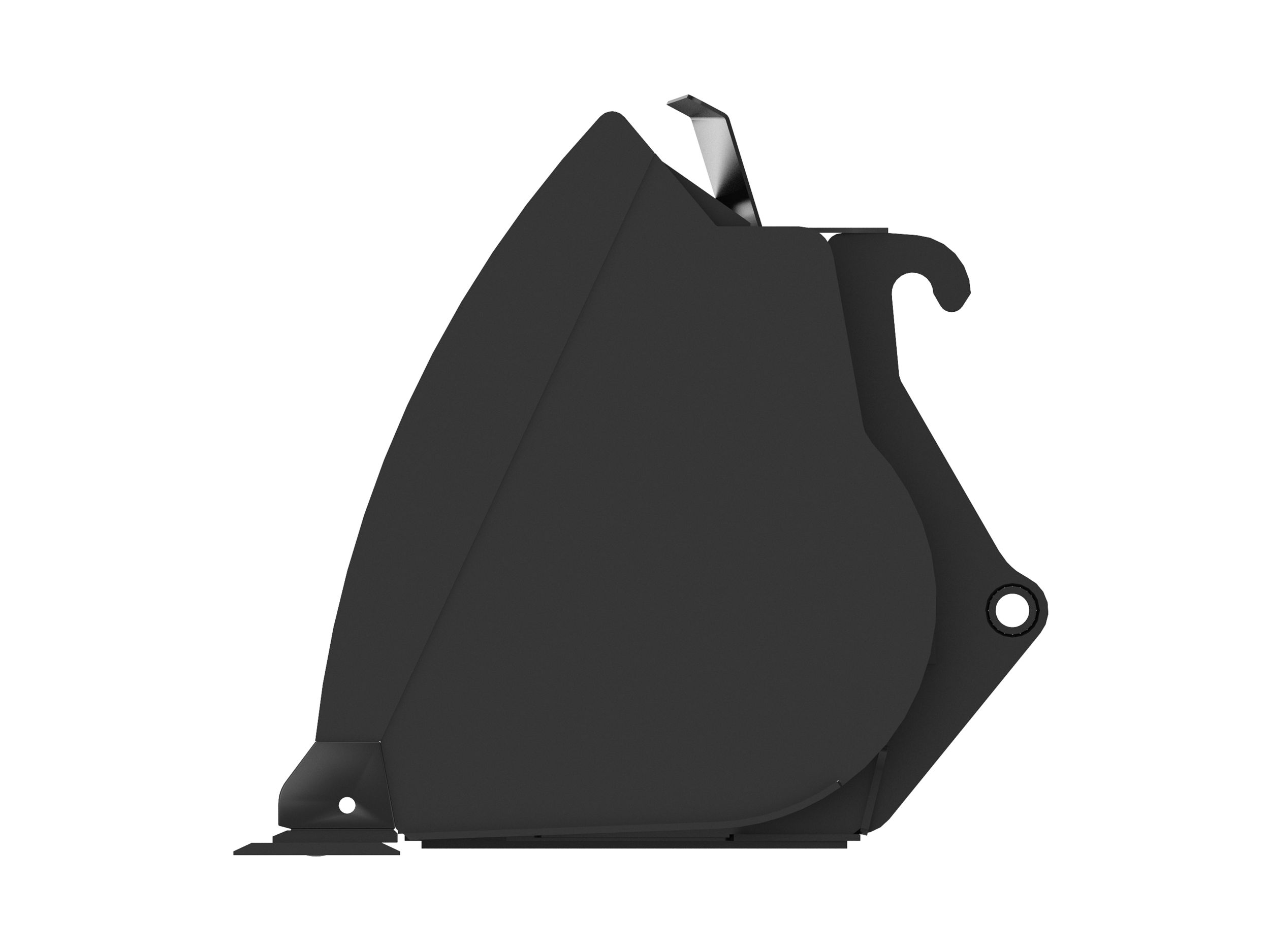 Penetrating rounded sidebars help funnel material into the bucket, holding more material with less spillage.