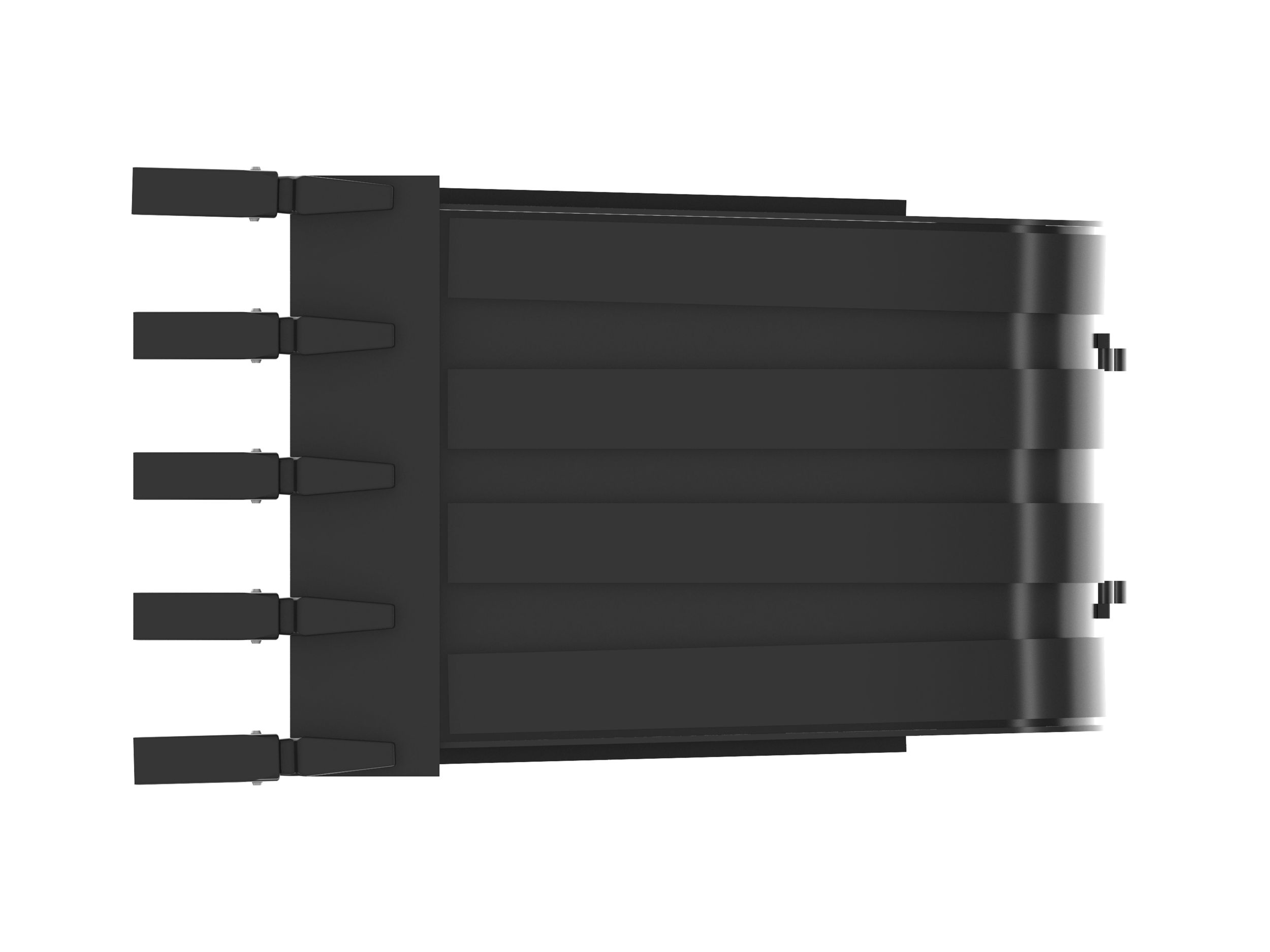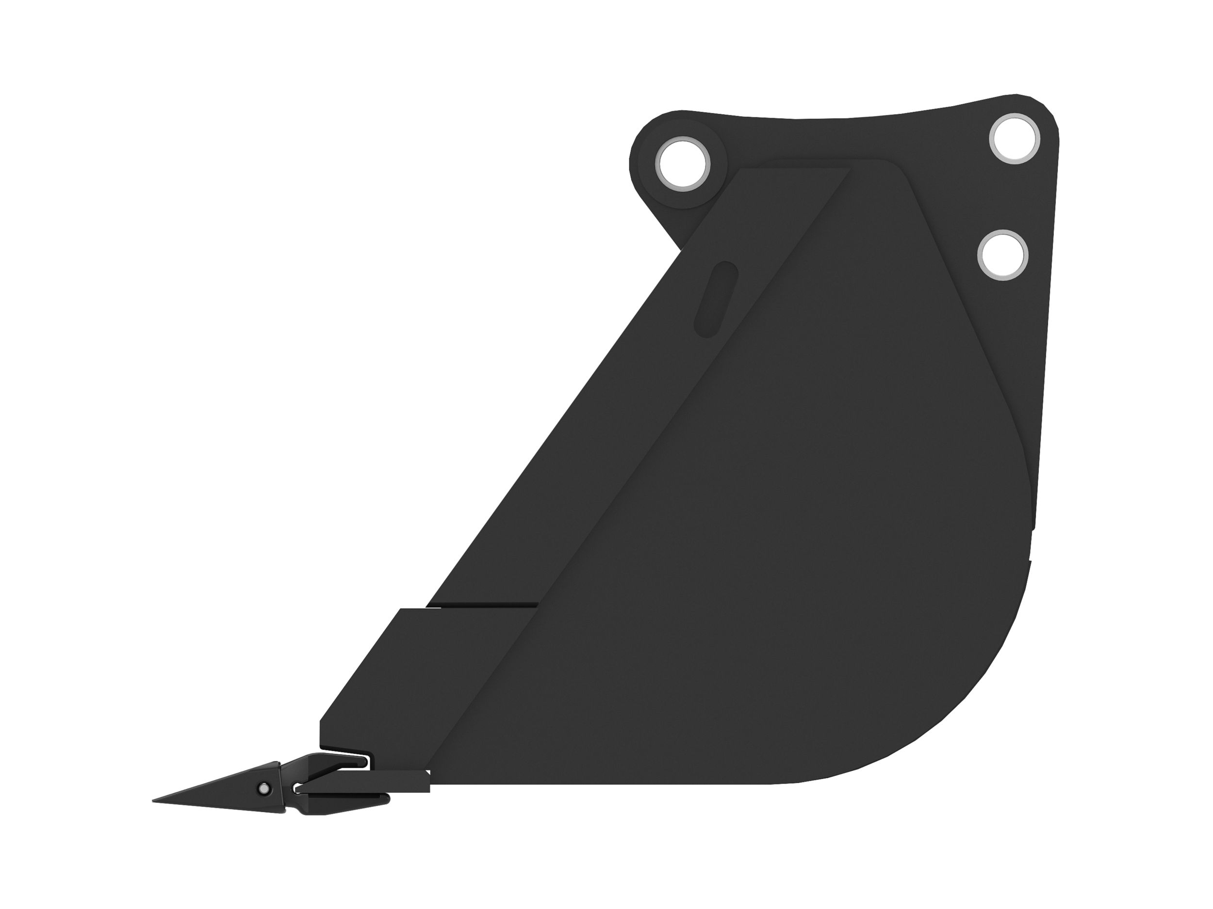 Enhanced bucket shape allows material to flow more easily. Tapered bucket sidewalls allow for easy dumping of sticky material.