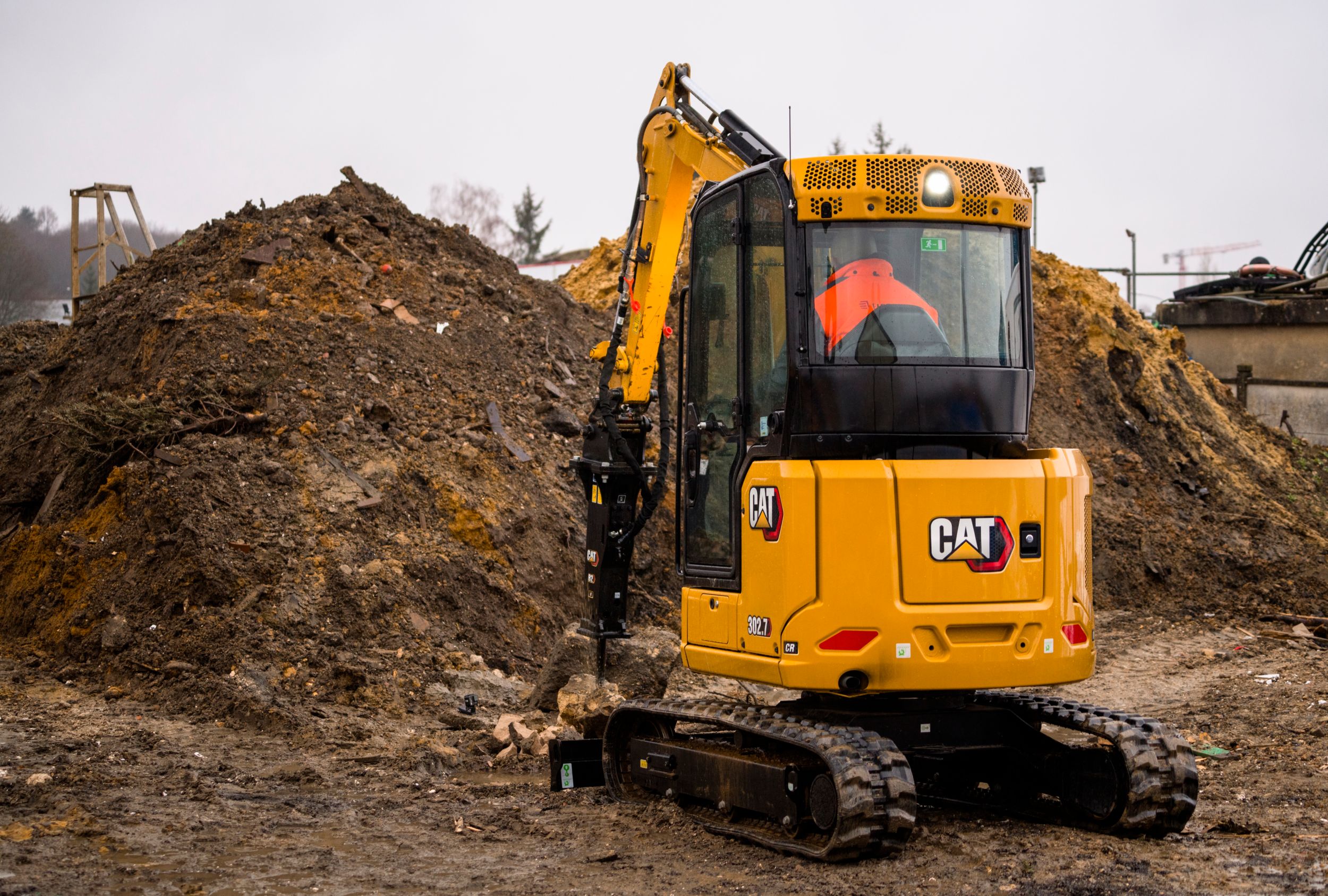 The Cat® 302.7 CR Mini Excavator delivers power and performance in a compact size to help you work in a wide range of applications.