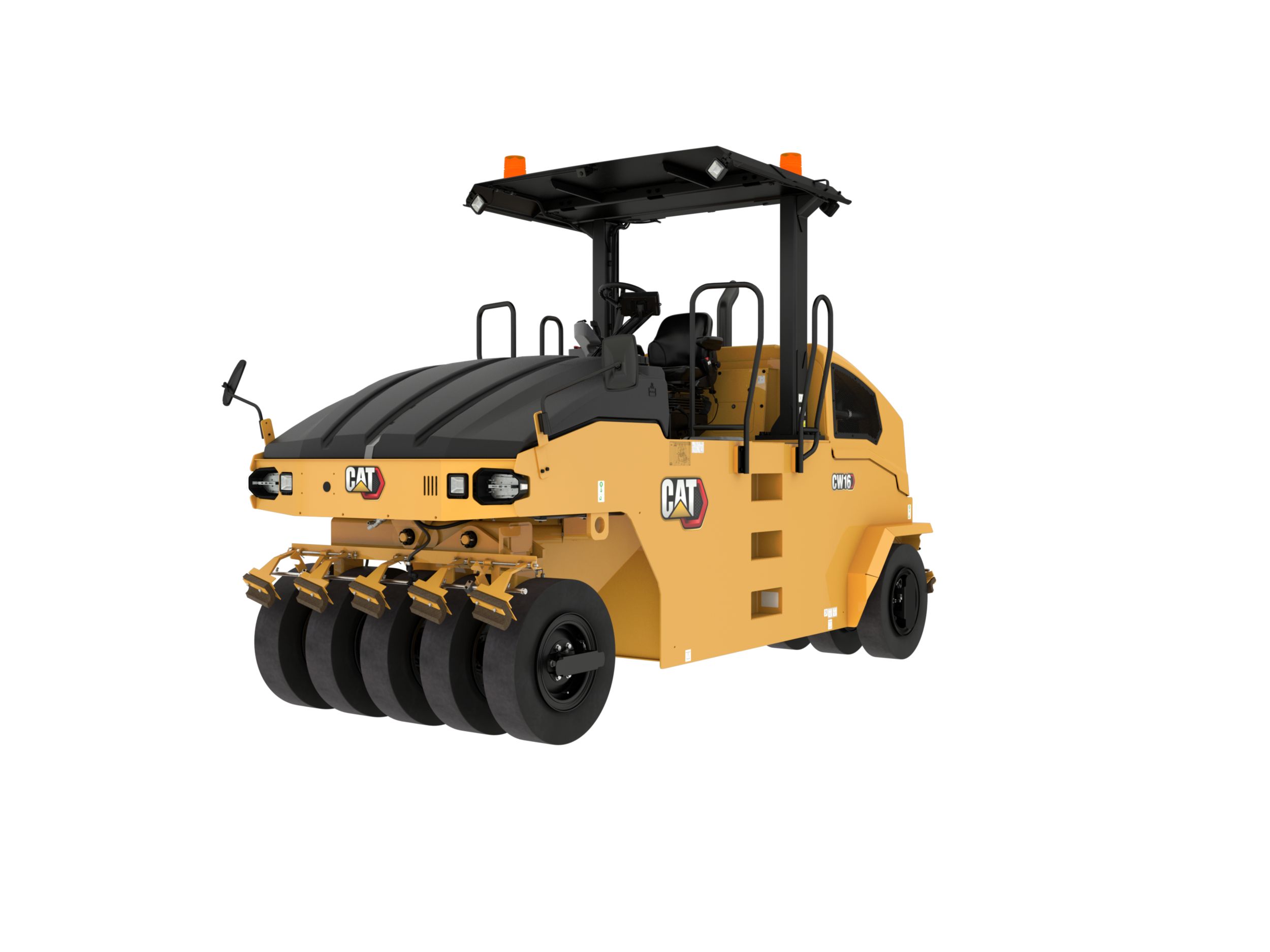 • The standard nine-wheel CW16 delivers a compaction width of 1.75 m (69") and operating weight range of 5200 kg to 15 000 kg (11,464 lb to 33,000 lb).