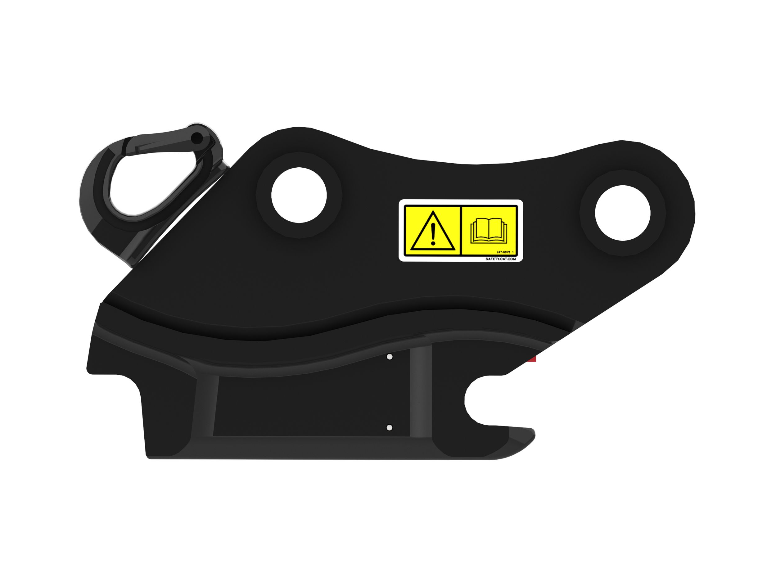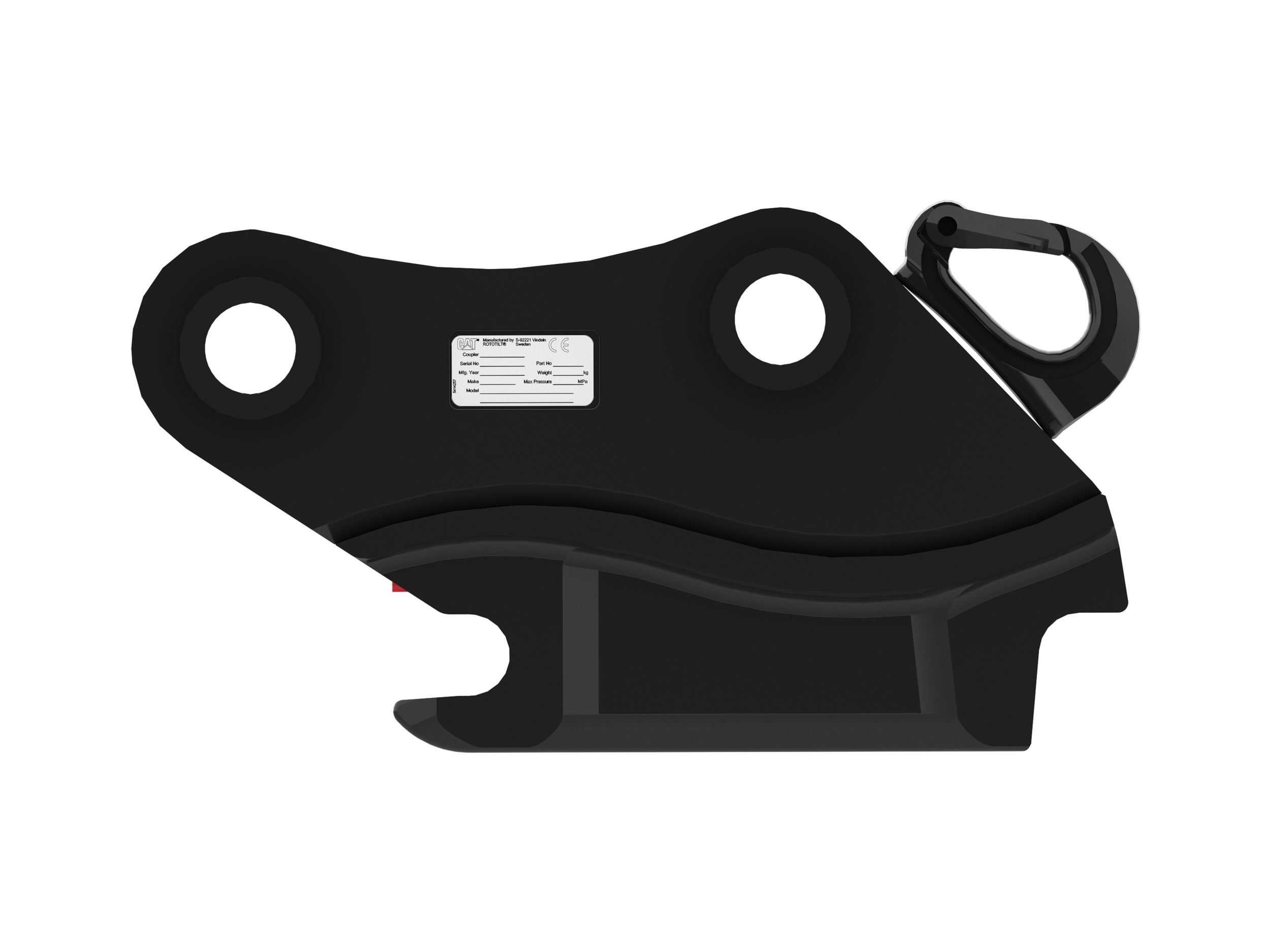 The visual verification rod allows the operator to visibly confirm, from the cab, that the coupler has successfully locked the attachment into place properly.