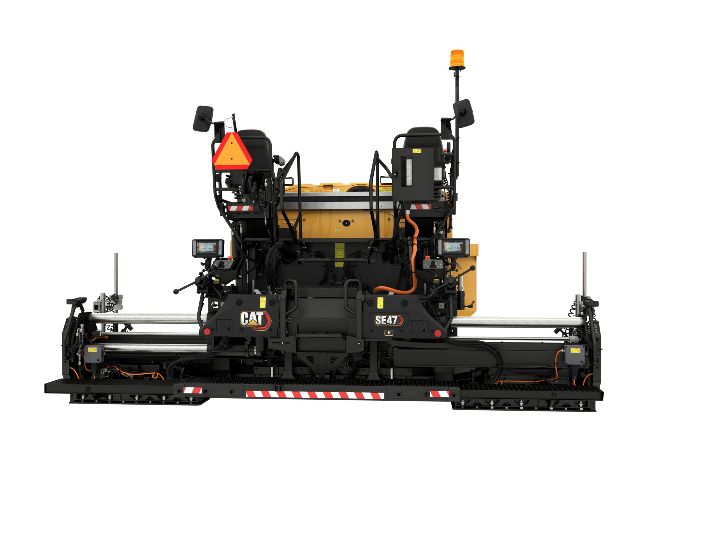 The Cat® SE47 V screed with rear-mounted extenders provides stability, easy set-up, and a versatile paving range, making it the perfect match for urban streets, parking lots, rural roads, and many other mid-sized paving applications.