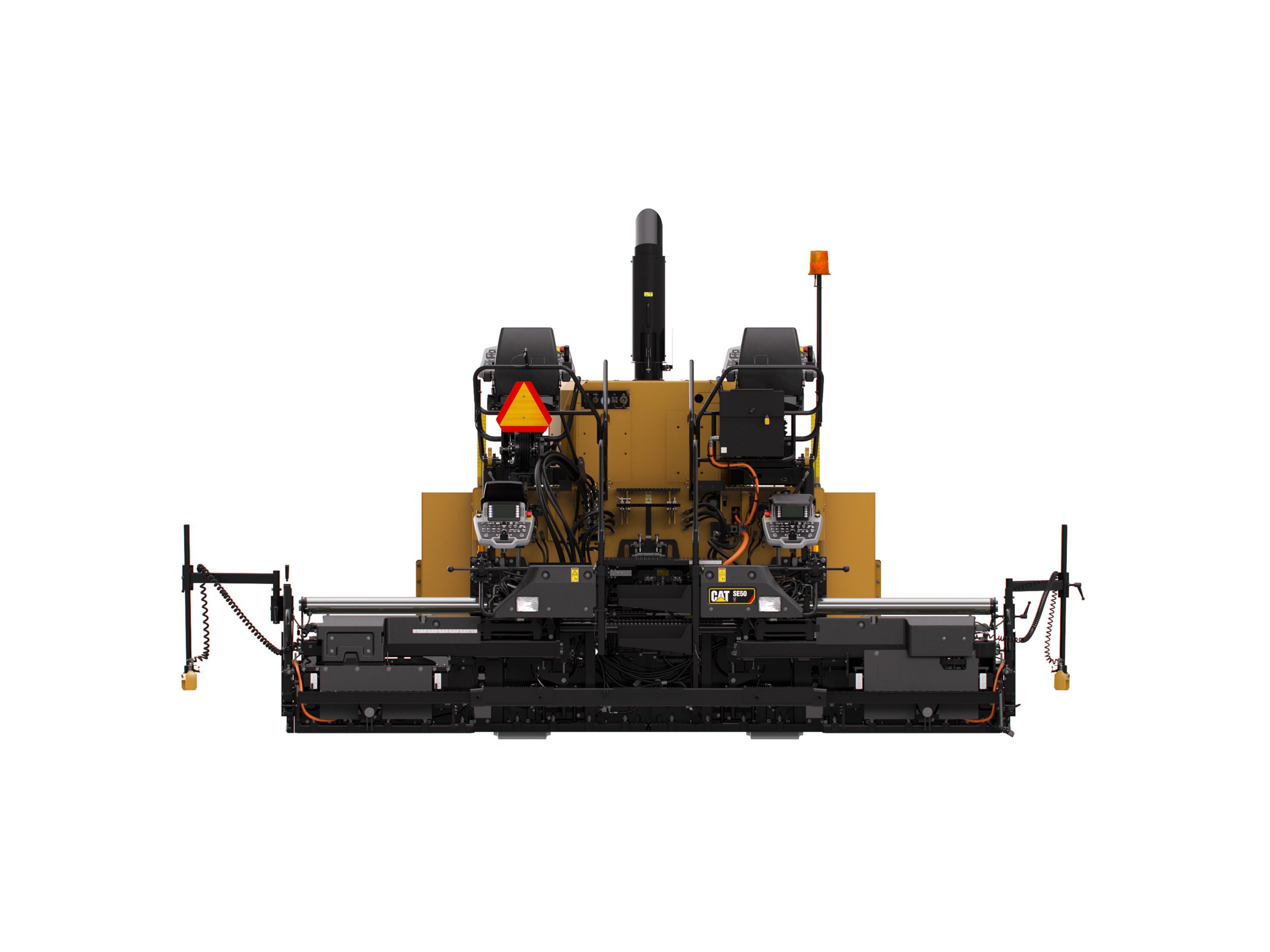 Factory integrated Cat Grade Control allows the crew to operate from either of the tractor or screed consoles. A split screen mode enables the screed operators to work from a single side or from each side of the screed. This is especially helpful when training new operators and when the crew is tasked with multiple job site duties.