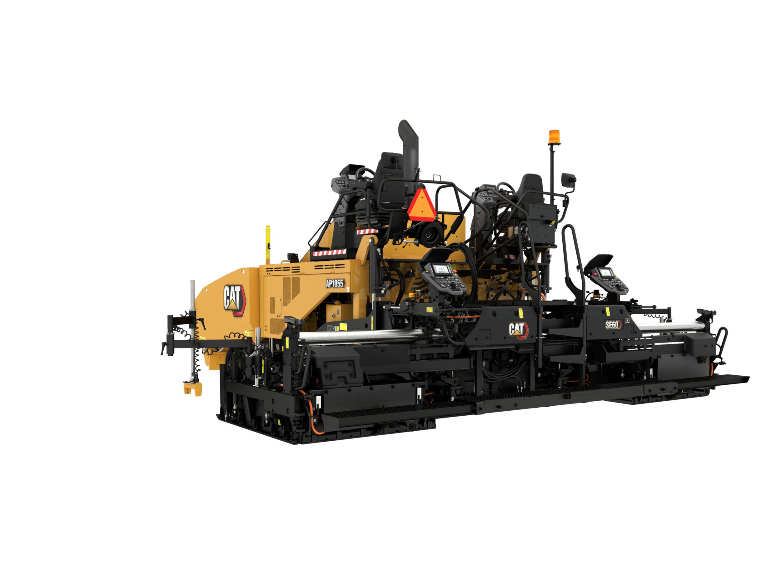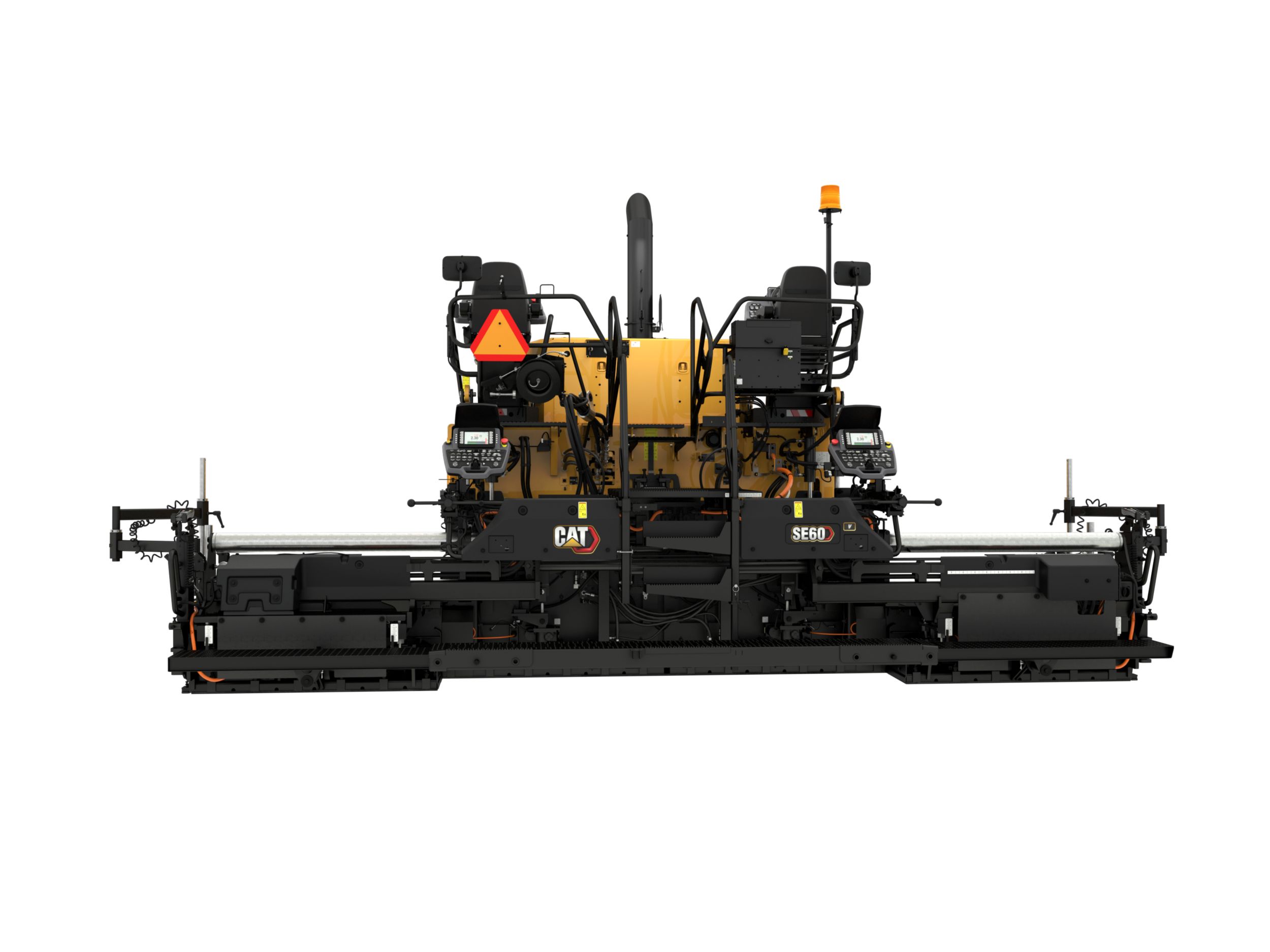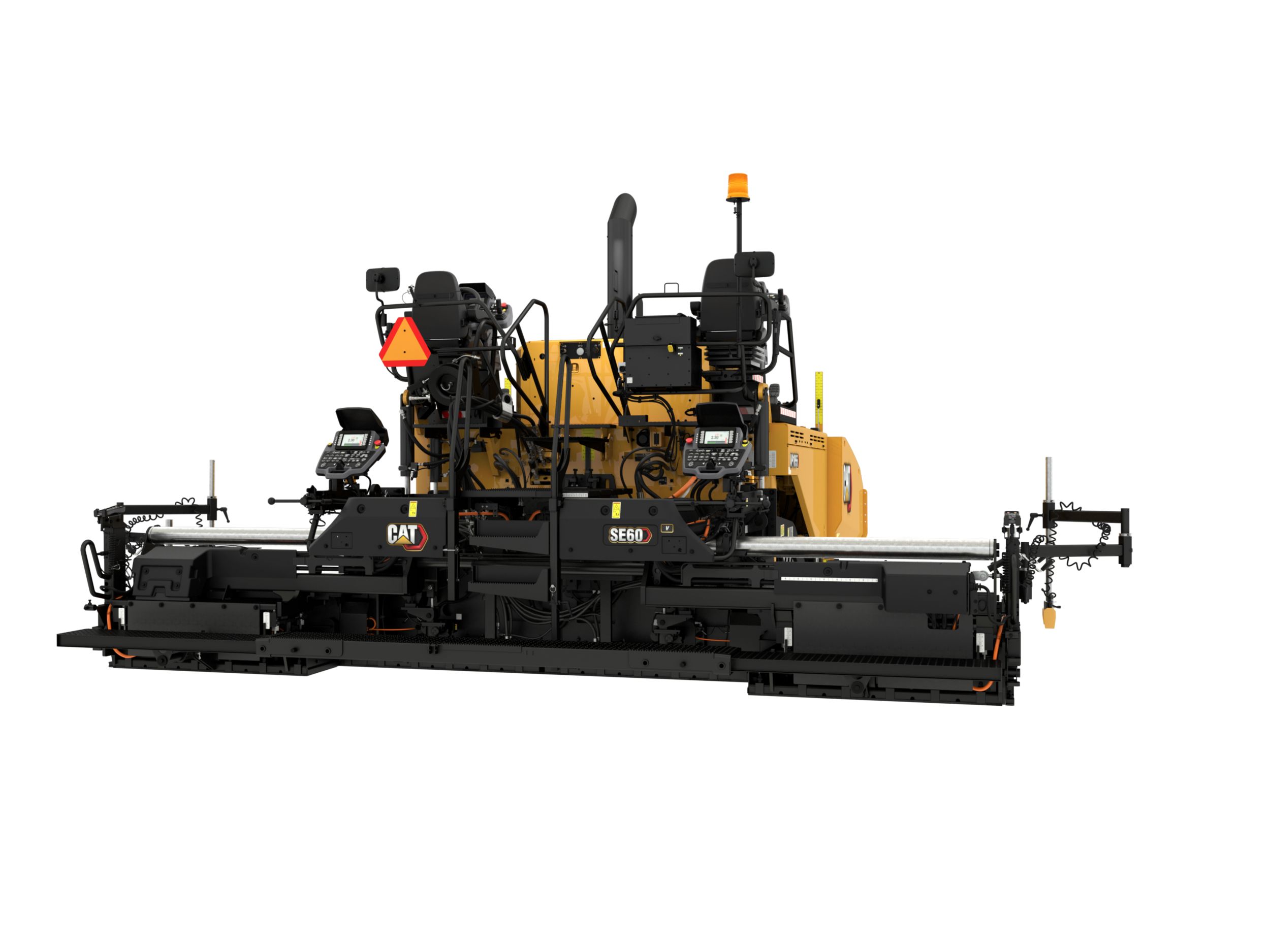 The Cat® SE60 V Asphalt Screed with rear-mounted extenders provides stability, easy set-up, and a versatile paving range, making it the perfect match for highways, interstates, airports, and many other high-production paving applications.