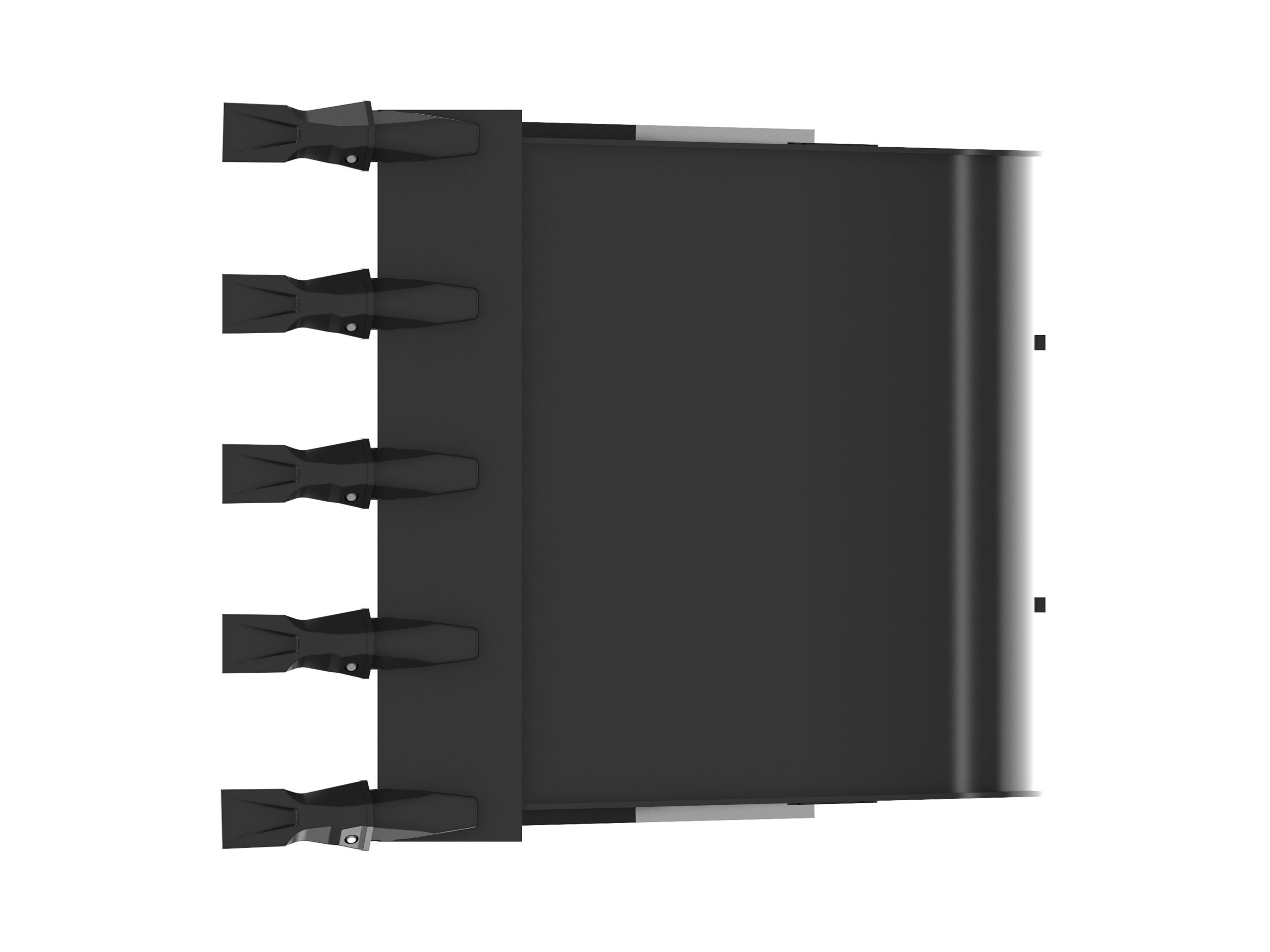Enhanced bucket shape allows material to flow more easily. Tapered bucket sidewalls allow for easy dumping of sticky material.