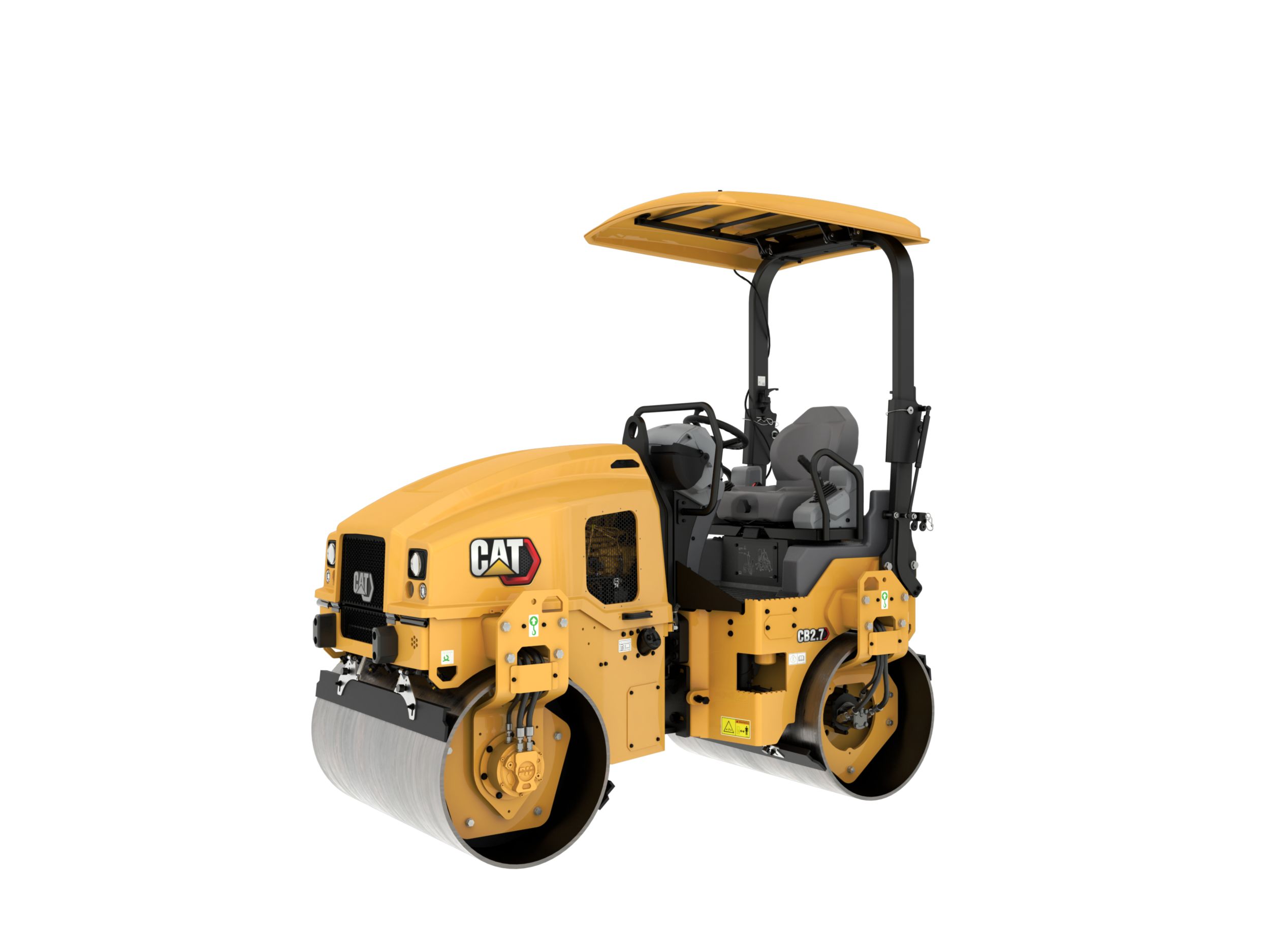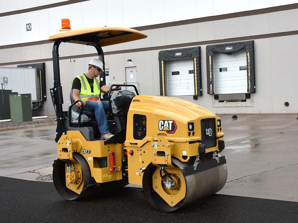 The CB2.7 is a 2.7 to 3 metric ton compactor with 1200 mm (47 in) drums. It's a versatile machine that can be used as the only vibratory roller on small sized jobs or on larger jobs as a support roller for high-production rollers. Its high amplitude and drum width give it the capacity to achieve a tons-per-day production rate that make it an excellent match for shoulders, small parking lots, lane additions, or other similar sized jobs.