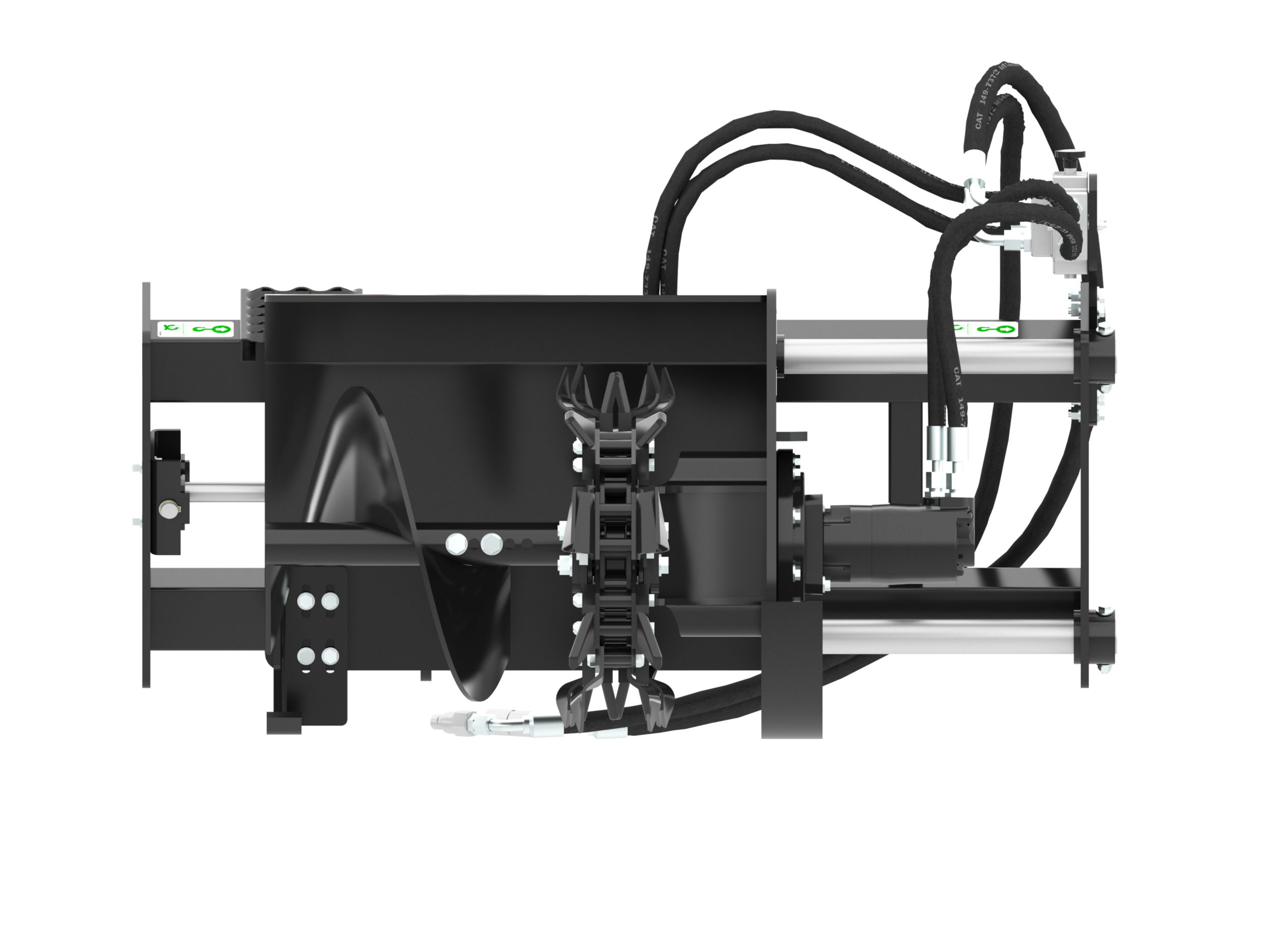 Large diameter bolt-on spoil auger improves loose soil removal from trenching area and allows for quick, easy removal and servicing.