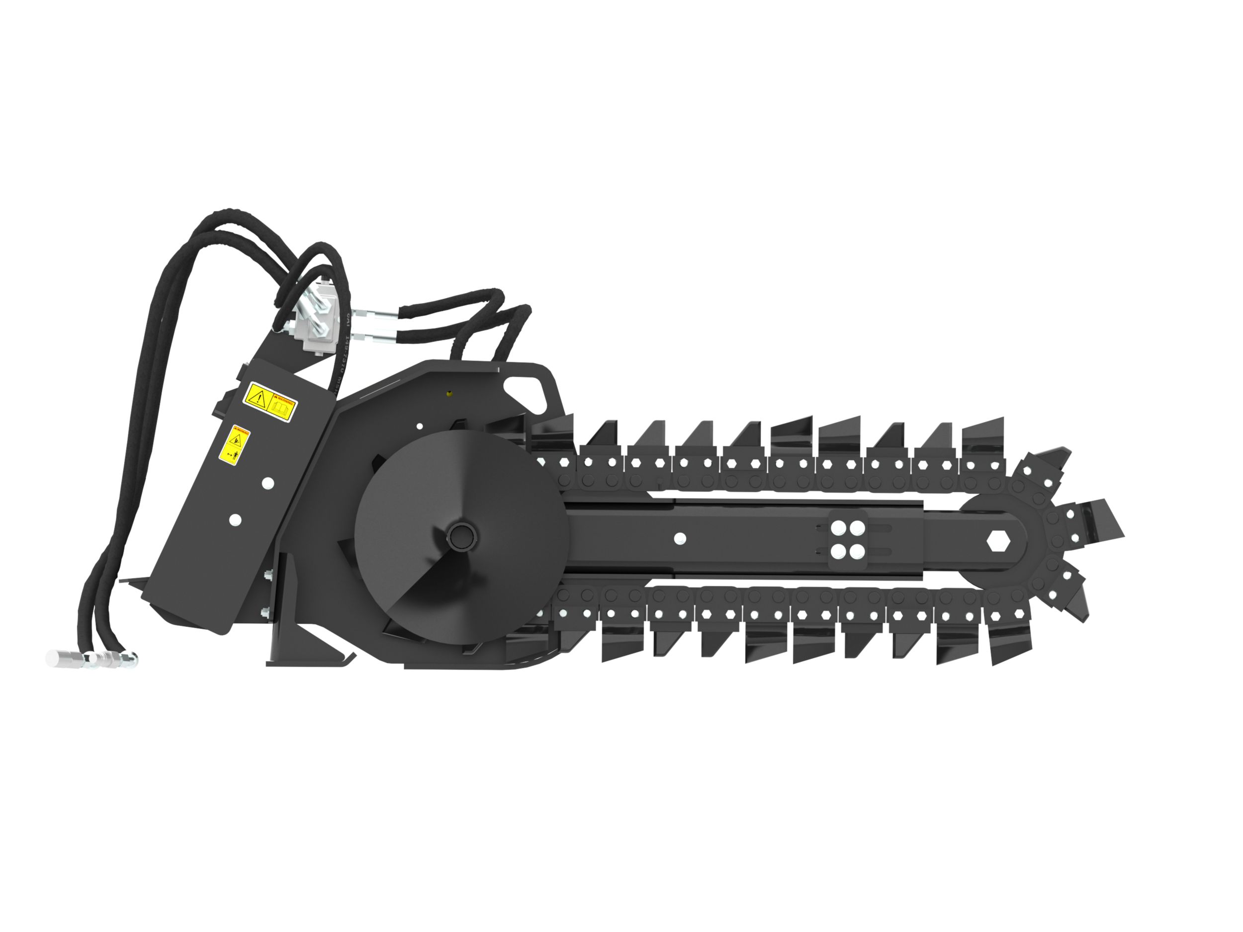 Optional chain types and cutting widths are available for specific soil, digging requirements and trench widths. These chain types include Standard, Combo, Terminator, and Rockfrost.