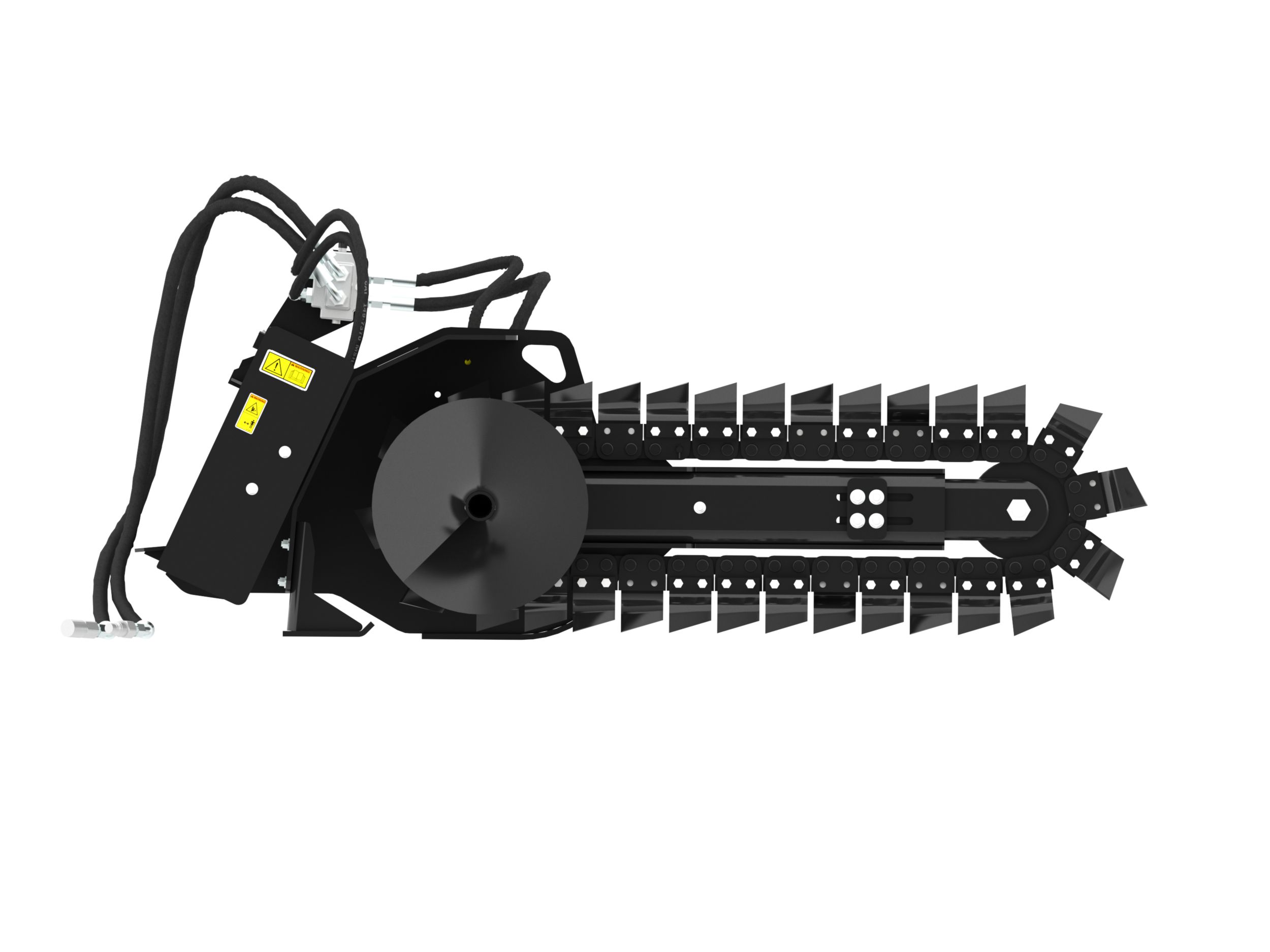 Optional chain types and cutting widths are available for specific soil, digging requirements and trench widths. These chain types include Standard, Combo, Terminator, and Rockfrost.