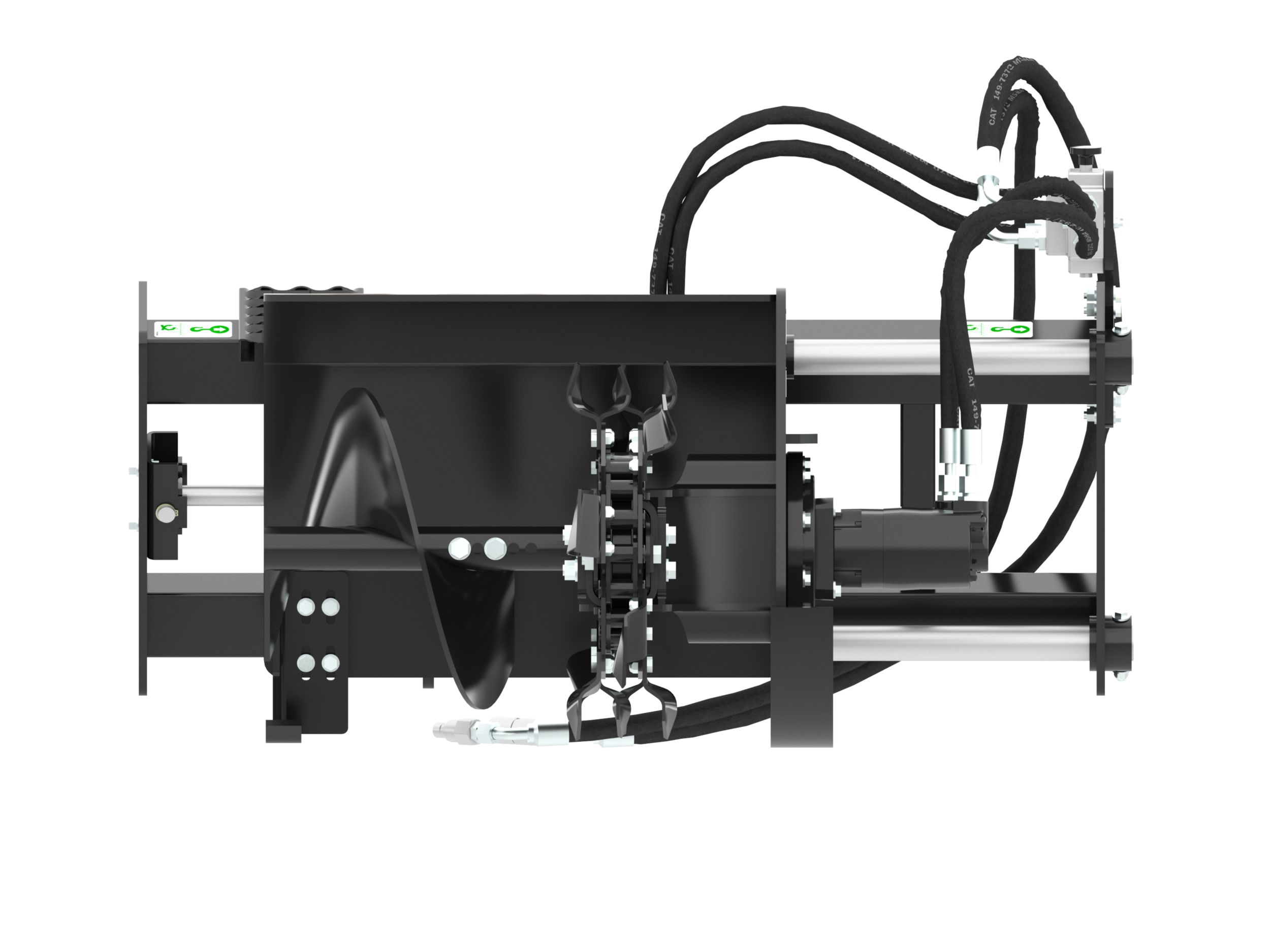 Large diameter bolt-on spoil auger improves loose soil removal from trenching area and allows for quick, easy removal and servicing.