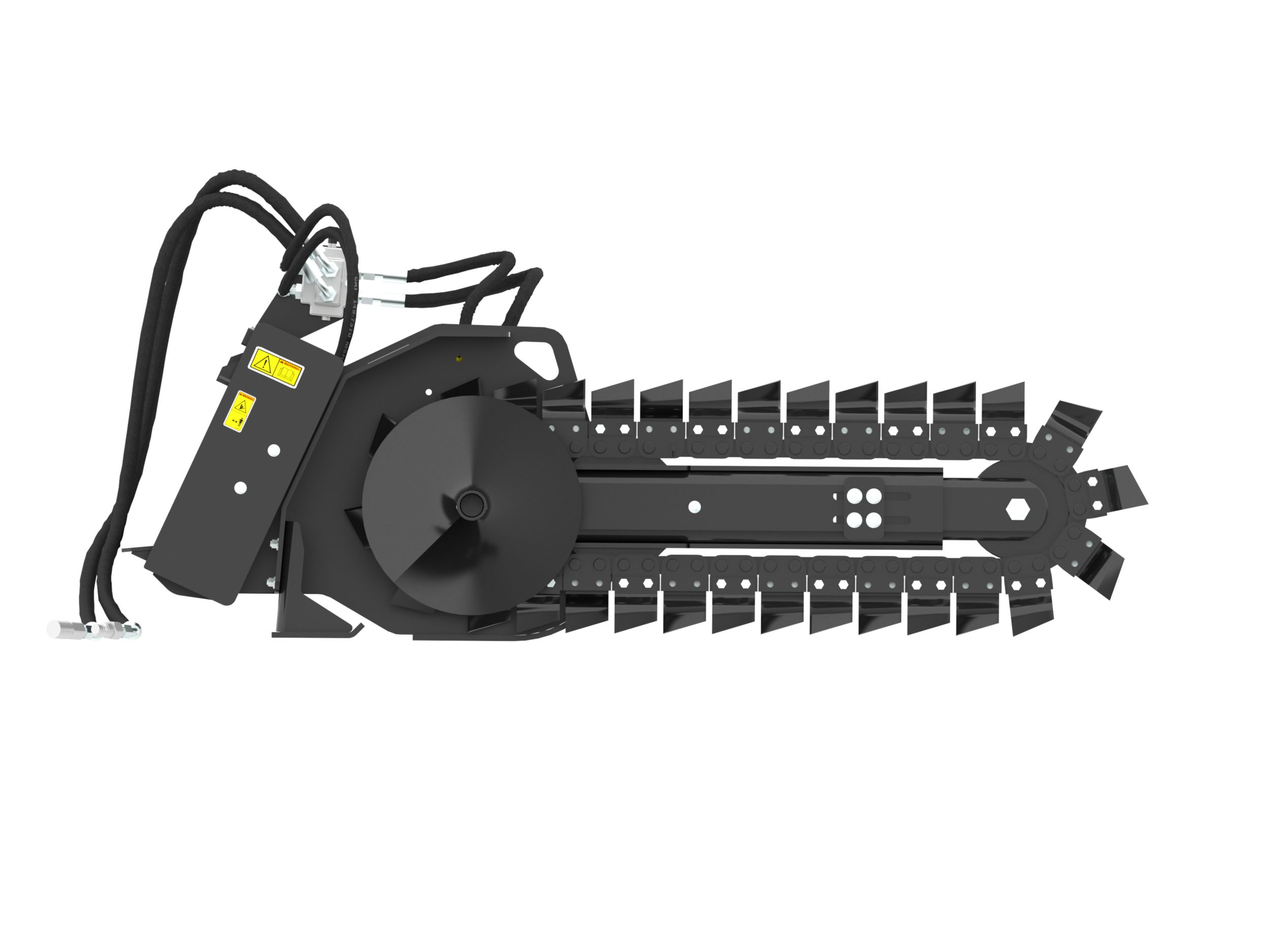 Optional chain types and cutting widths are available for specific soil, digging requirements and trench widths. These chain types include Standard, Combo, Terminator, and Rockfrost.