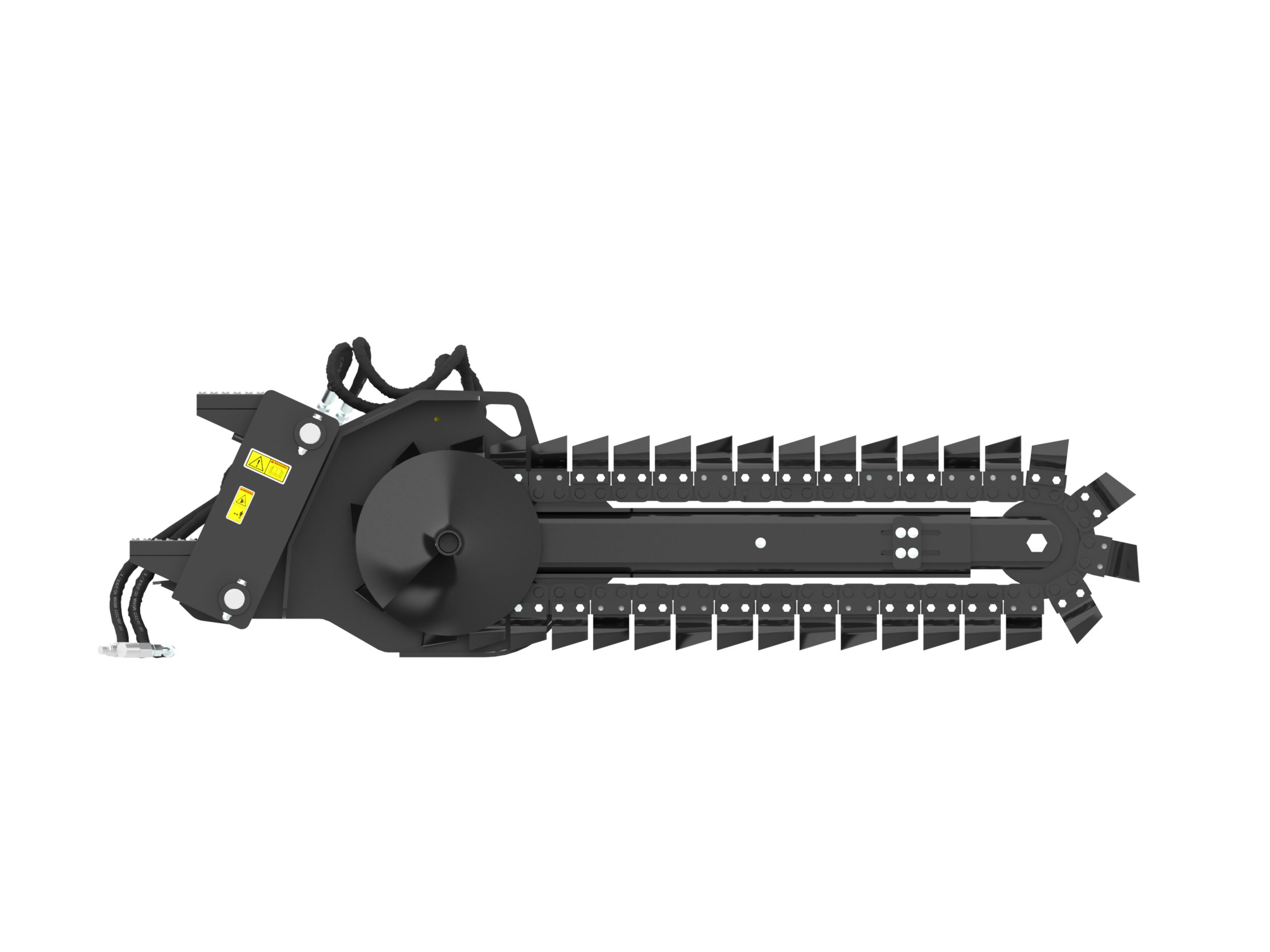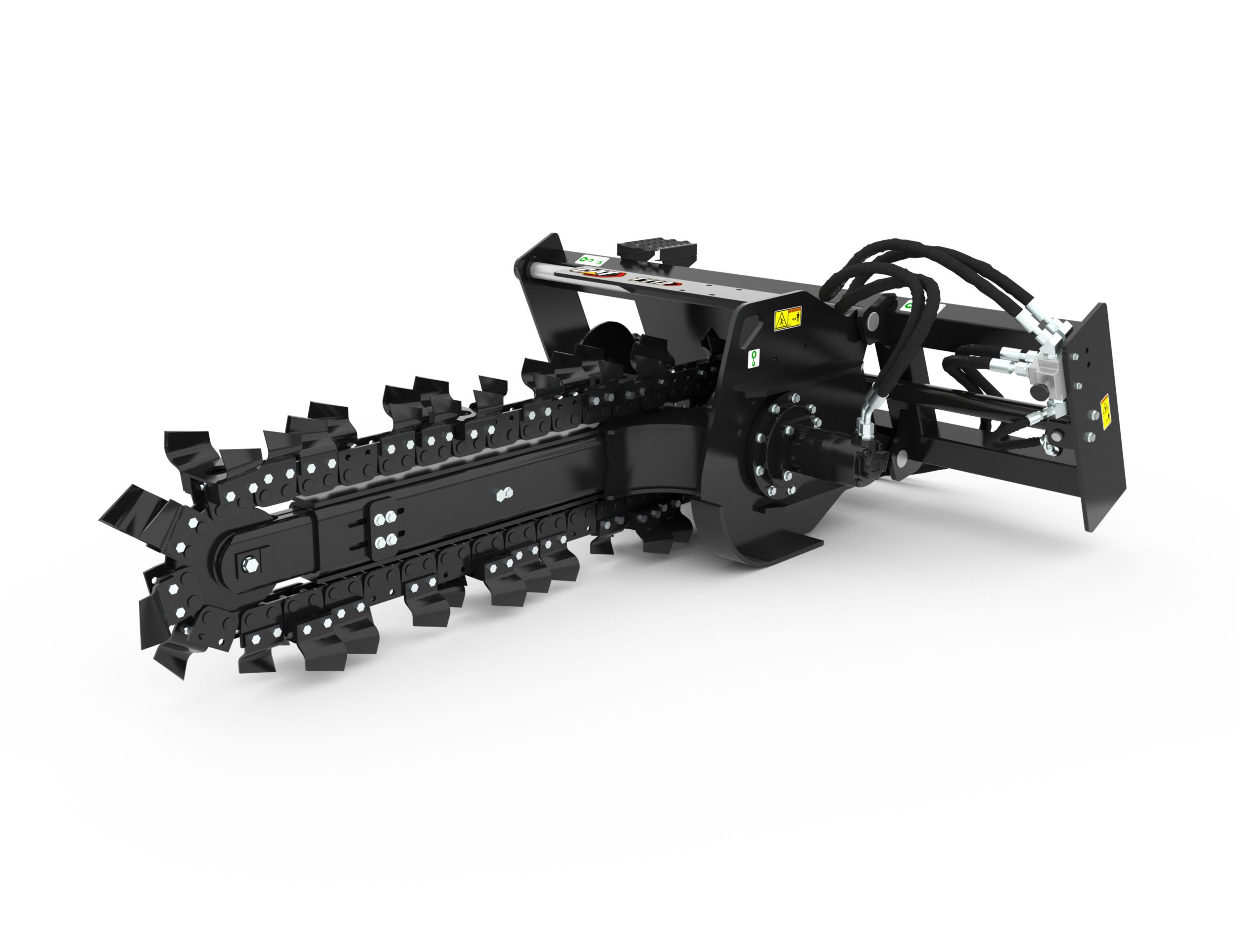 Optional chain types and cutting widths are available for specific soil, digging requirements and trench widths. These chain types include Standard, Combo, Terminator, and Rockfrost.