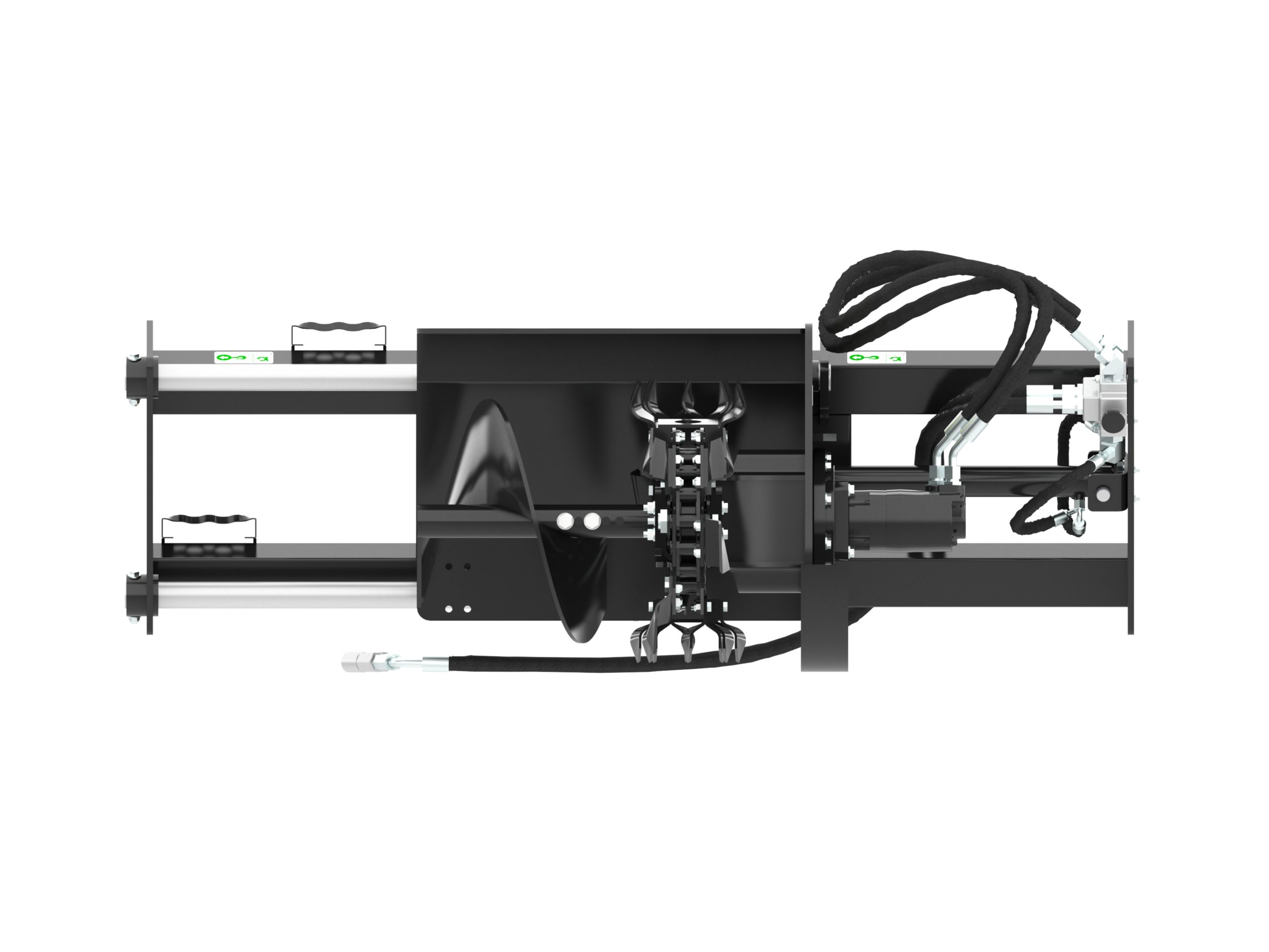 Large diameter bolt-on spoil auger improves loose soil removal from trenching area and allows for quick, easy removal and servicing.