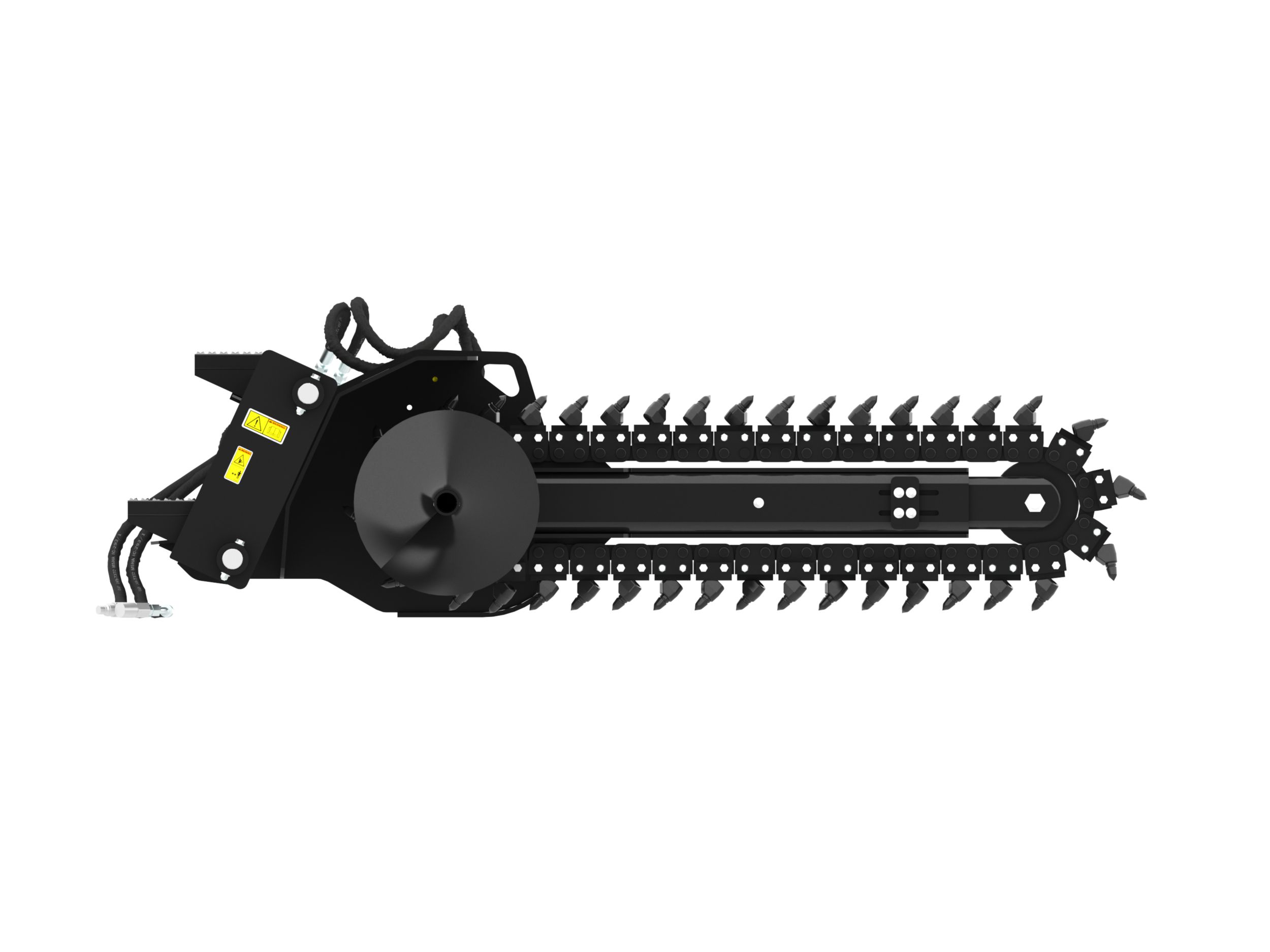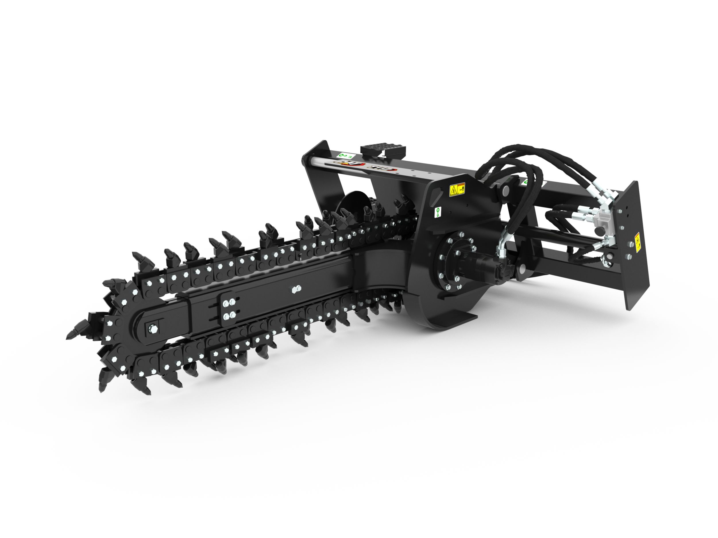Optional chain types and cutting widths are available for specific soil, digging requirements and trench widths. These chain types include Standard, Combo, Terminator, and Rockfrost.