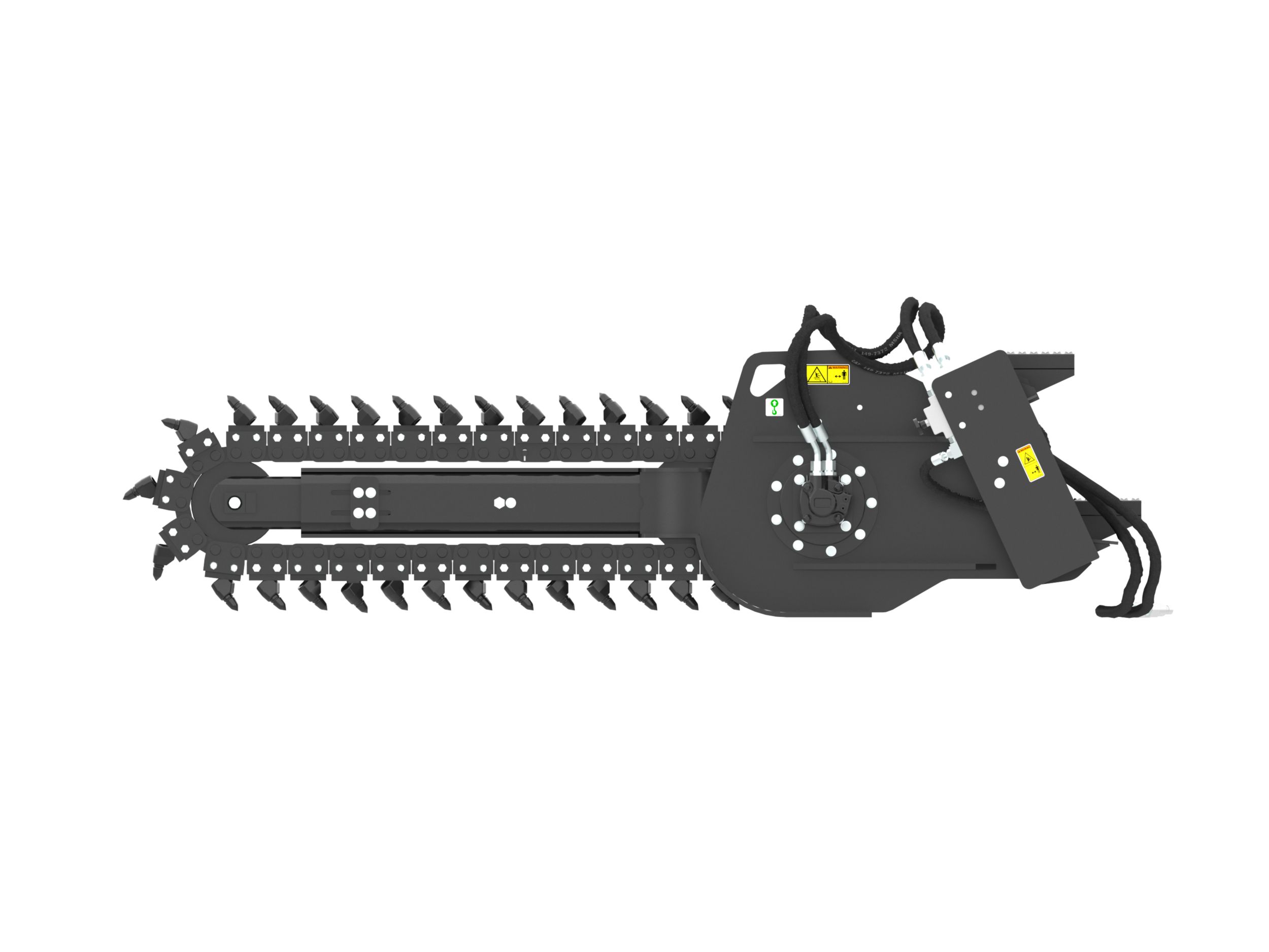 Direct drive system features a variable speed, bi-directional, gerotor style motor that delivers optimal chain speed, chain pull and torque for maximum trenching performance in a broad range of soil types.