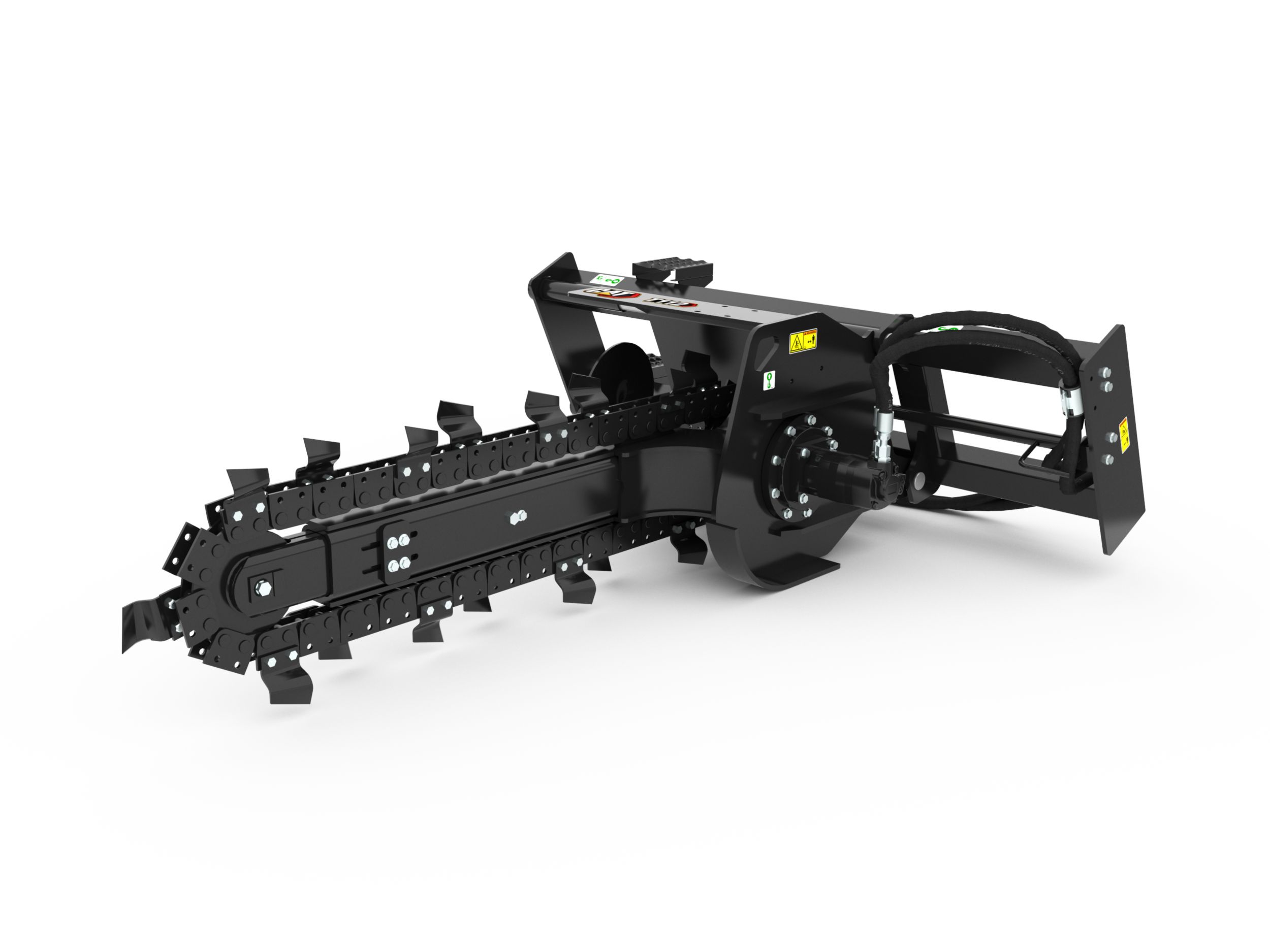 Optional chain types and cutting widths are available for specific soil, digging requirements and trench widths. These chain types include Standard, Combo, Terminator, and Rockfrost.