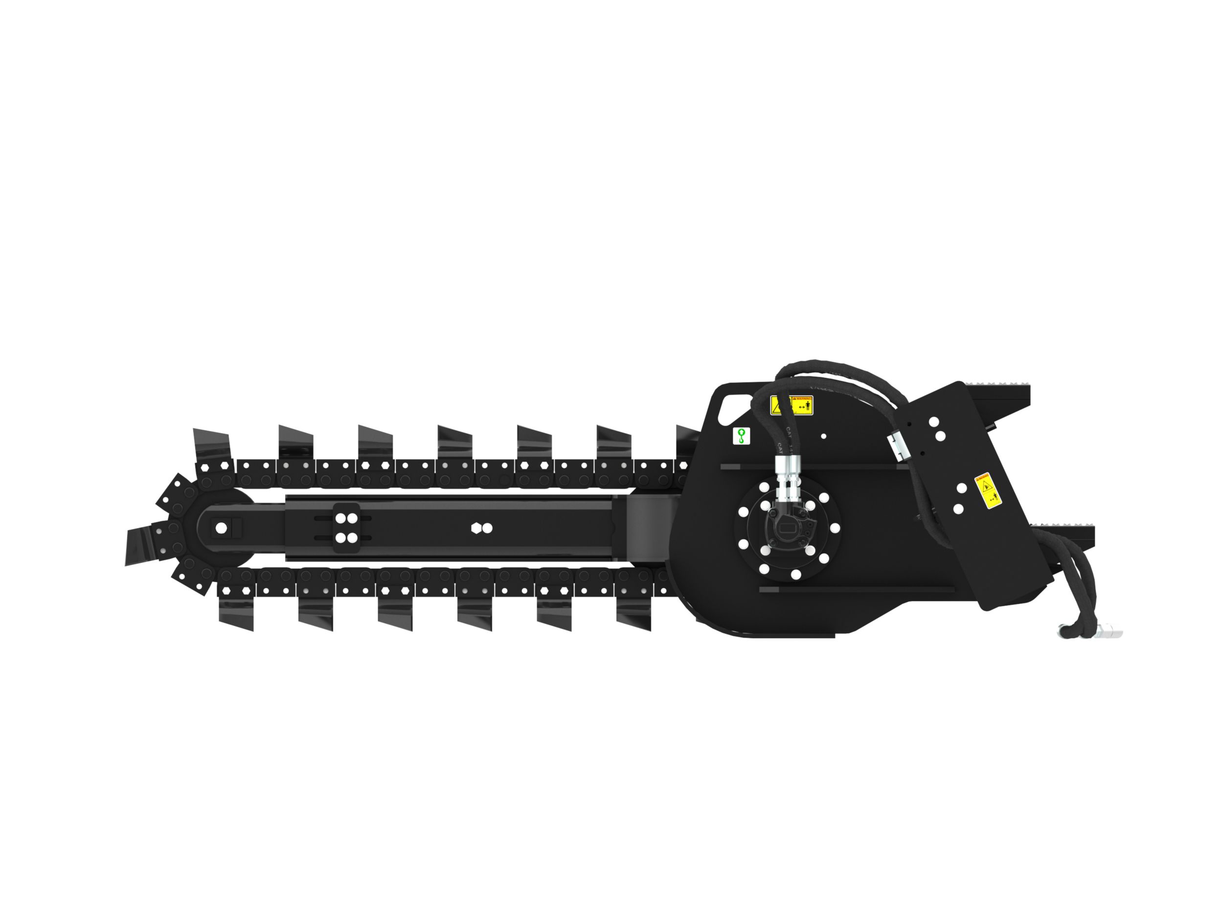 Direct drive system features a variable speed, bi-directional, gerotor style motor that delivers optimal chain speed, chain pull and torque for maximum trenching performance in a broad range of soil types.