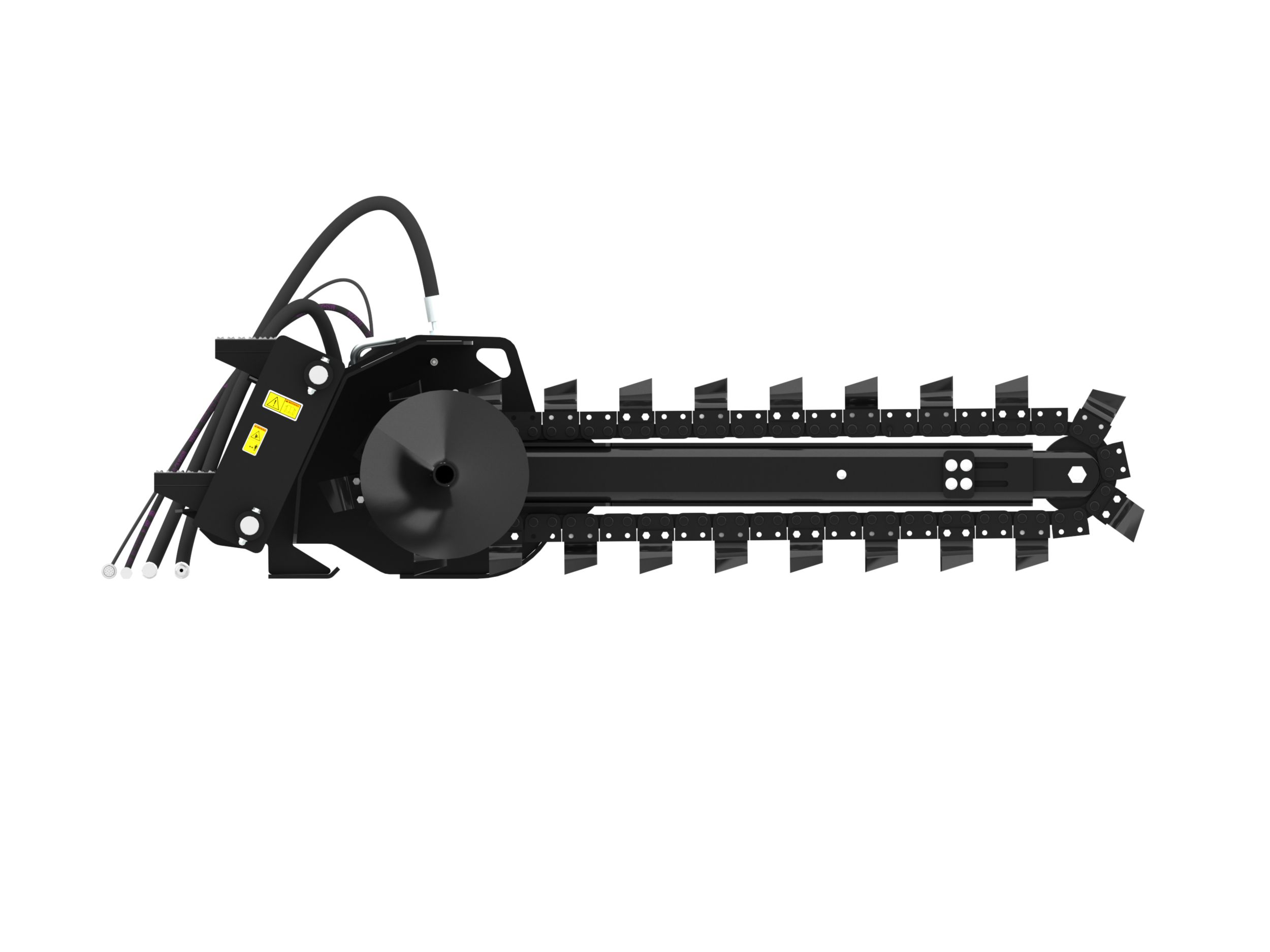 Optional chain types and cutting widths are available for specific soil, digging requirements and trench widths. These chain types include Standard, Combo, Terminator, and Rockfrost.
