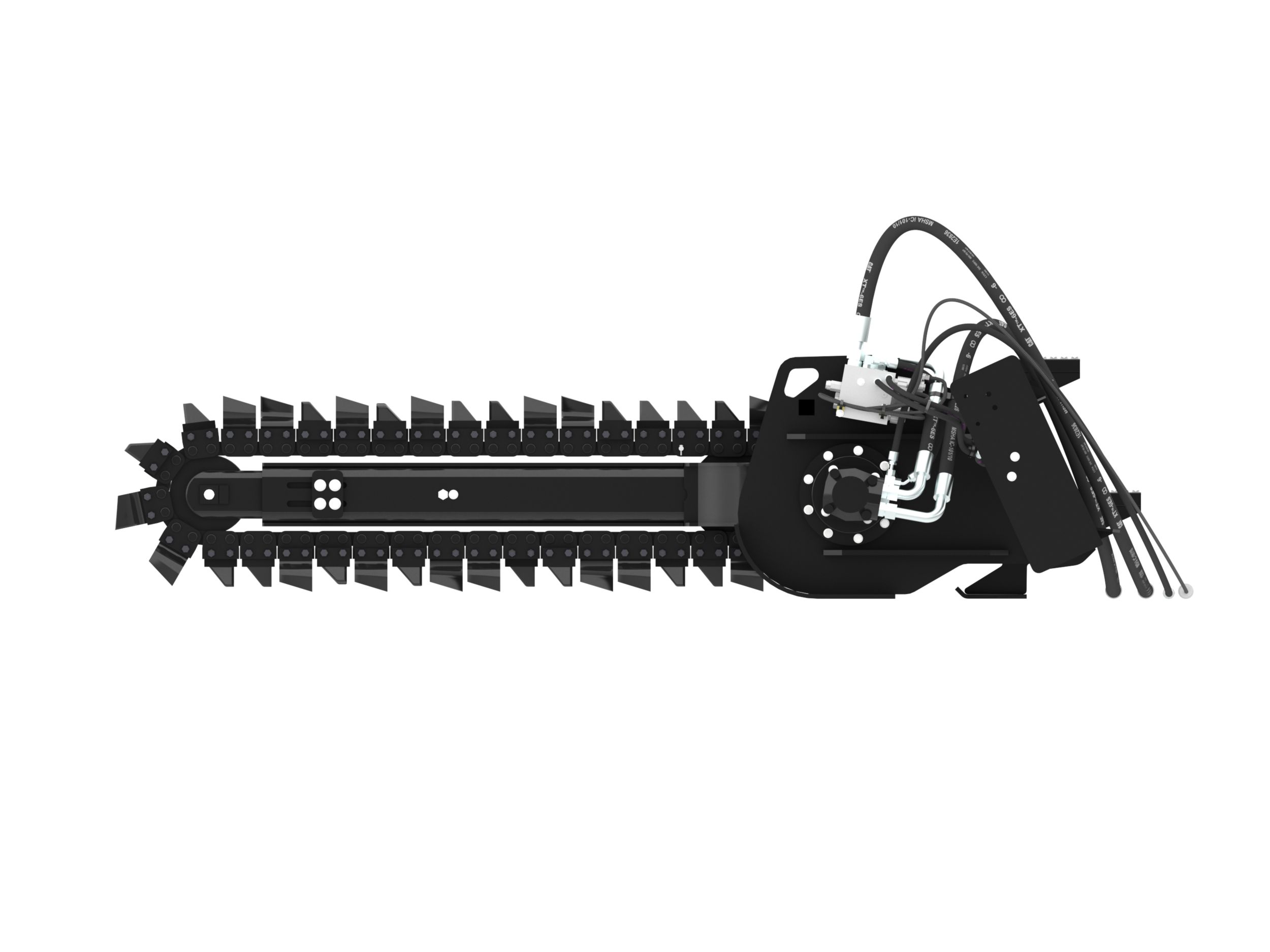 Direct drive system features a variable speed, bi-directional, gerotor style motor that delivers optimal chain speed, chain pull and torque for maximum trenching performance in a broad range of soil types.