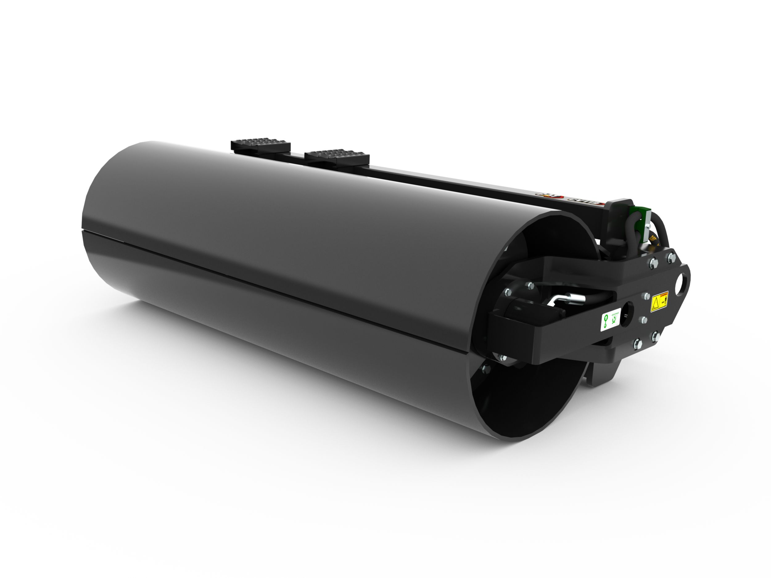 Pivoting interface allows the drum to oscillate +/-15 degrees and follow the contour of the ground.