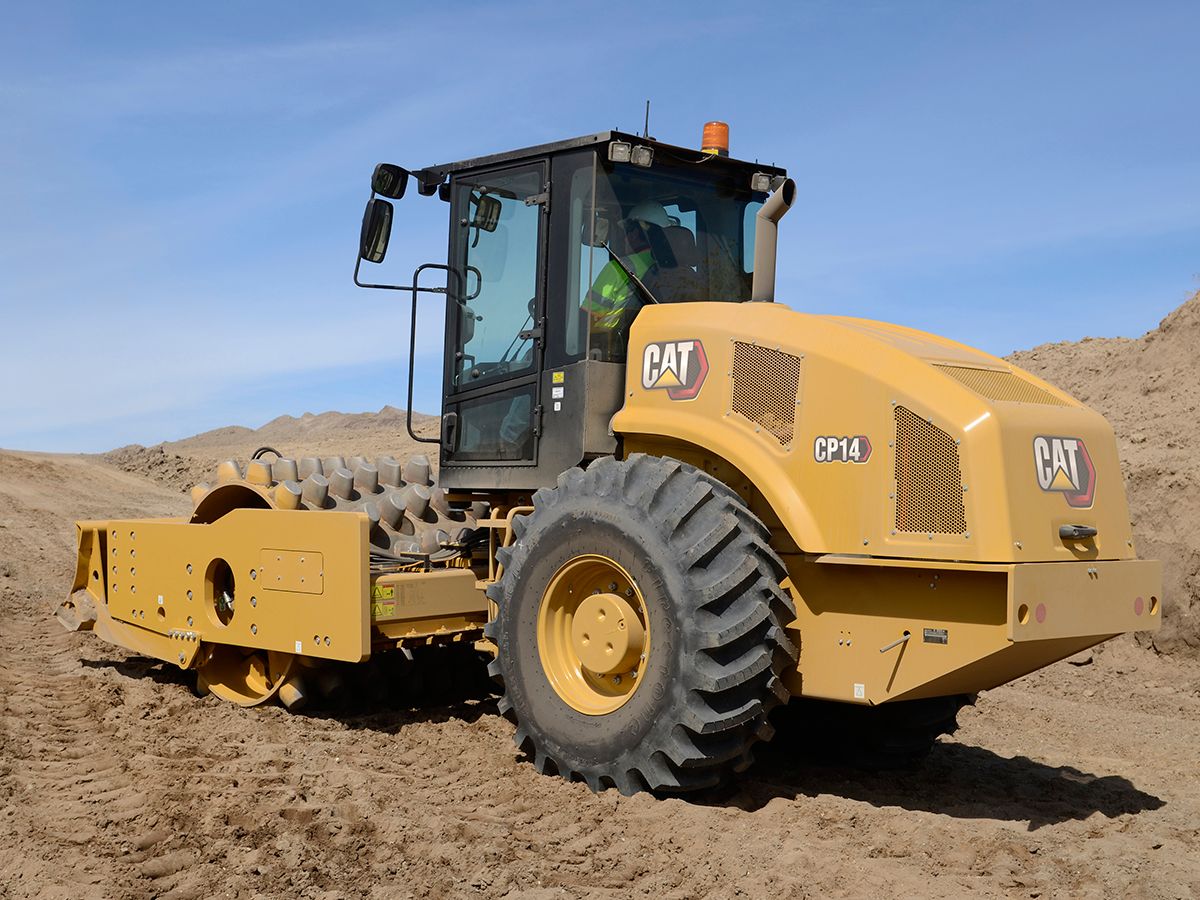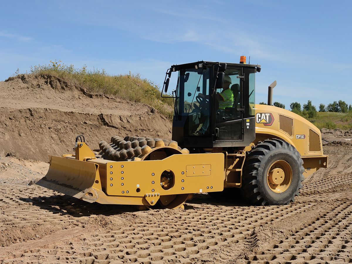 The Cat® CP14 Vibratory Soil Compactor features a padfoot drum and is ideally suited for cohesive and semi-cohesive soil applications. A reliable propel system improves performance and efficiency and compaction technology solutions help you reach target density faster.