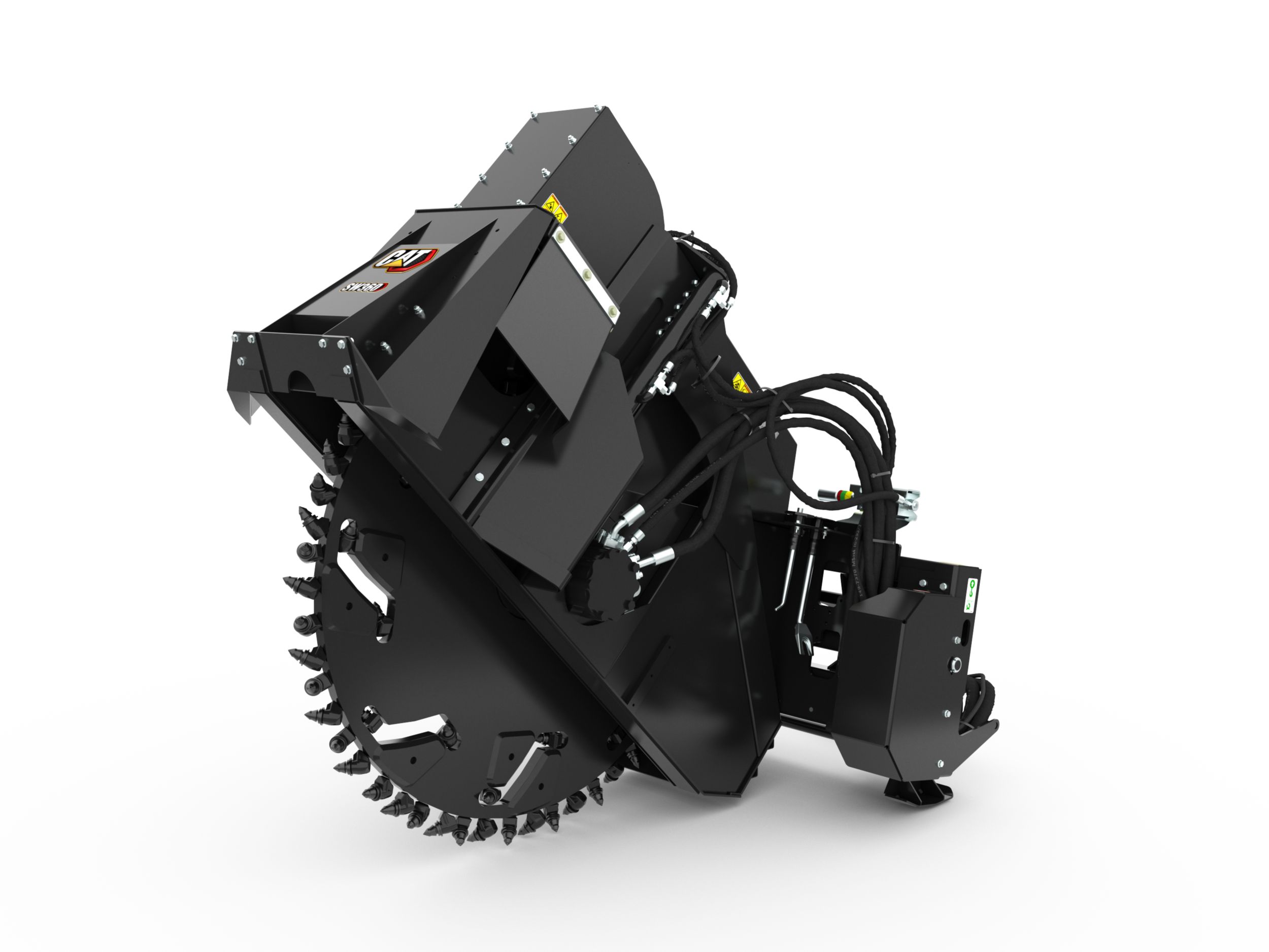 Cat® Wheel Saws are designed for high performance trench cutting on a variety of hard or compact surfaces such as asphalt, reinforced concrete, and rocky or frozen ground.
